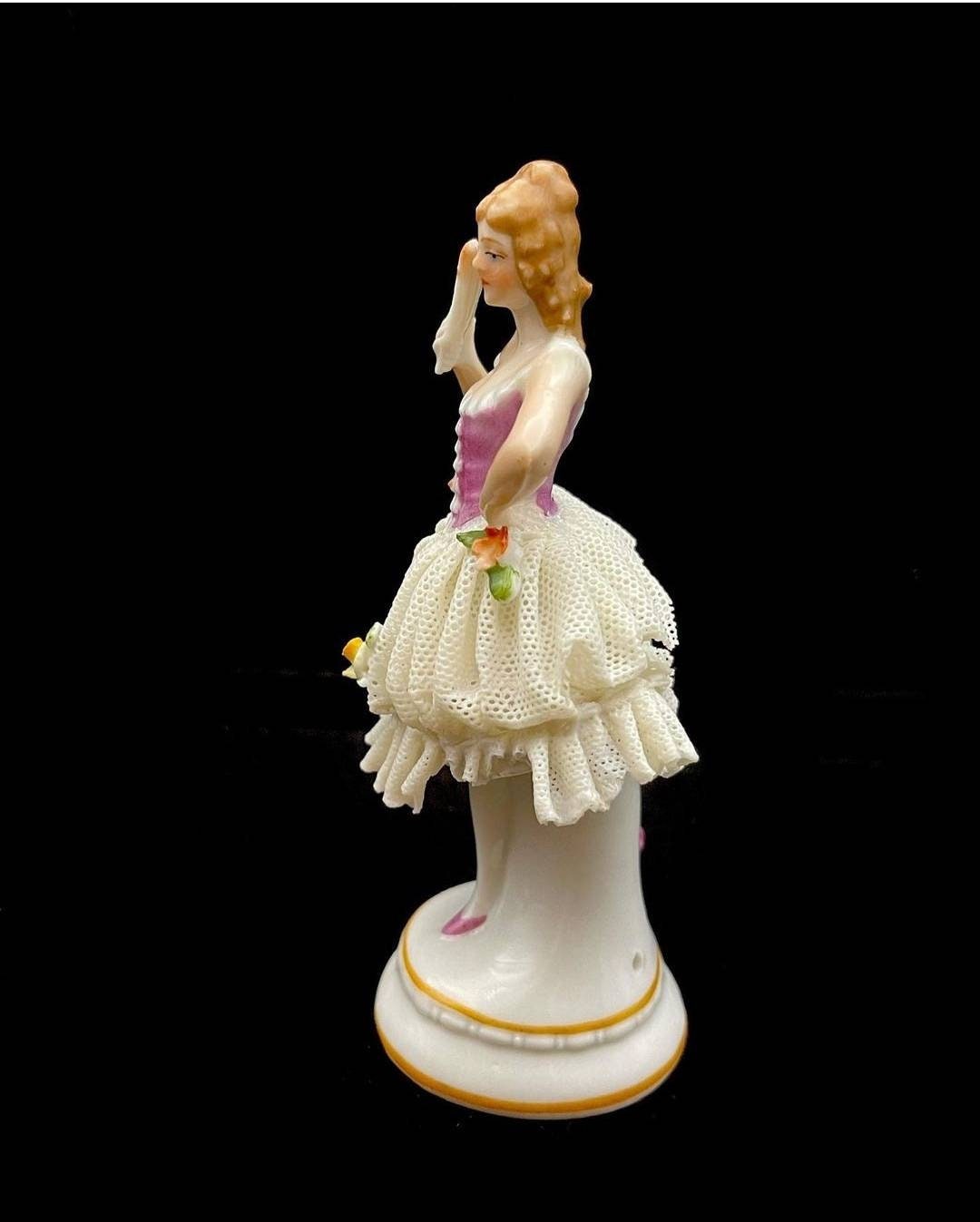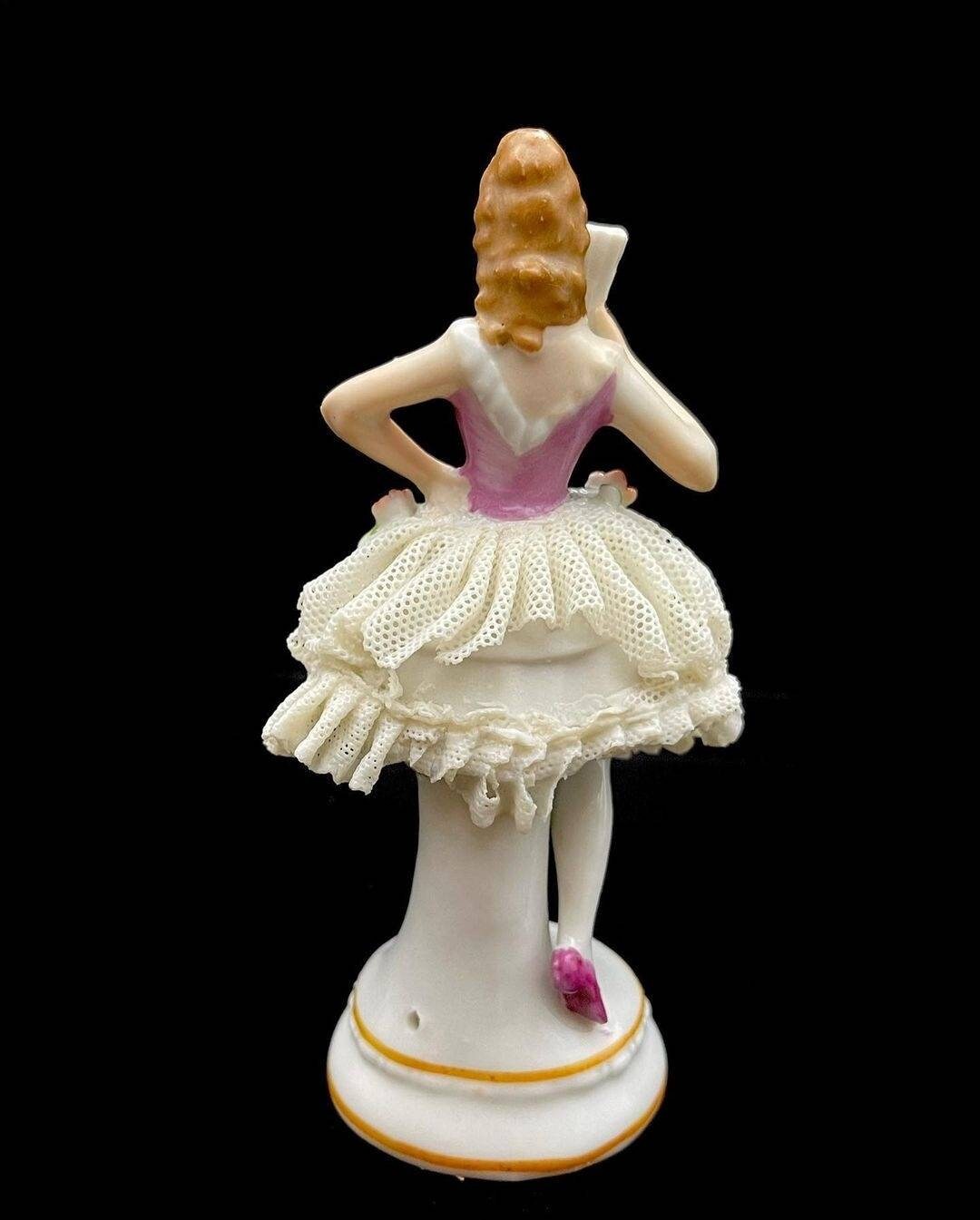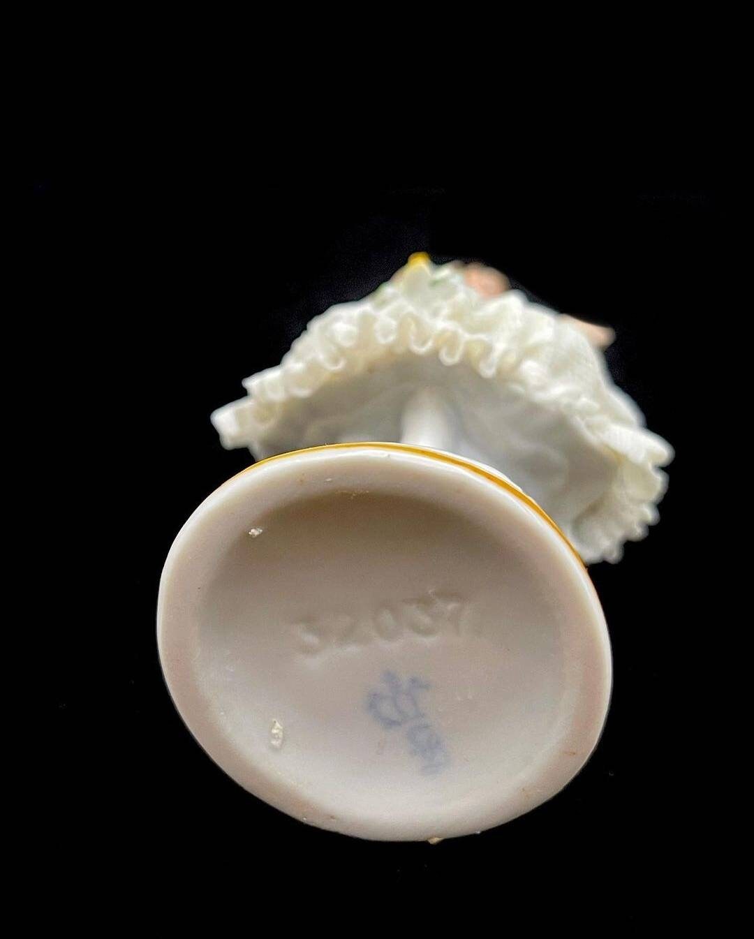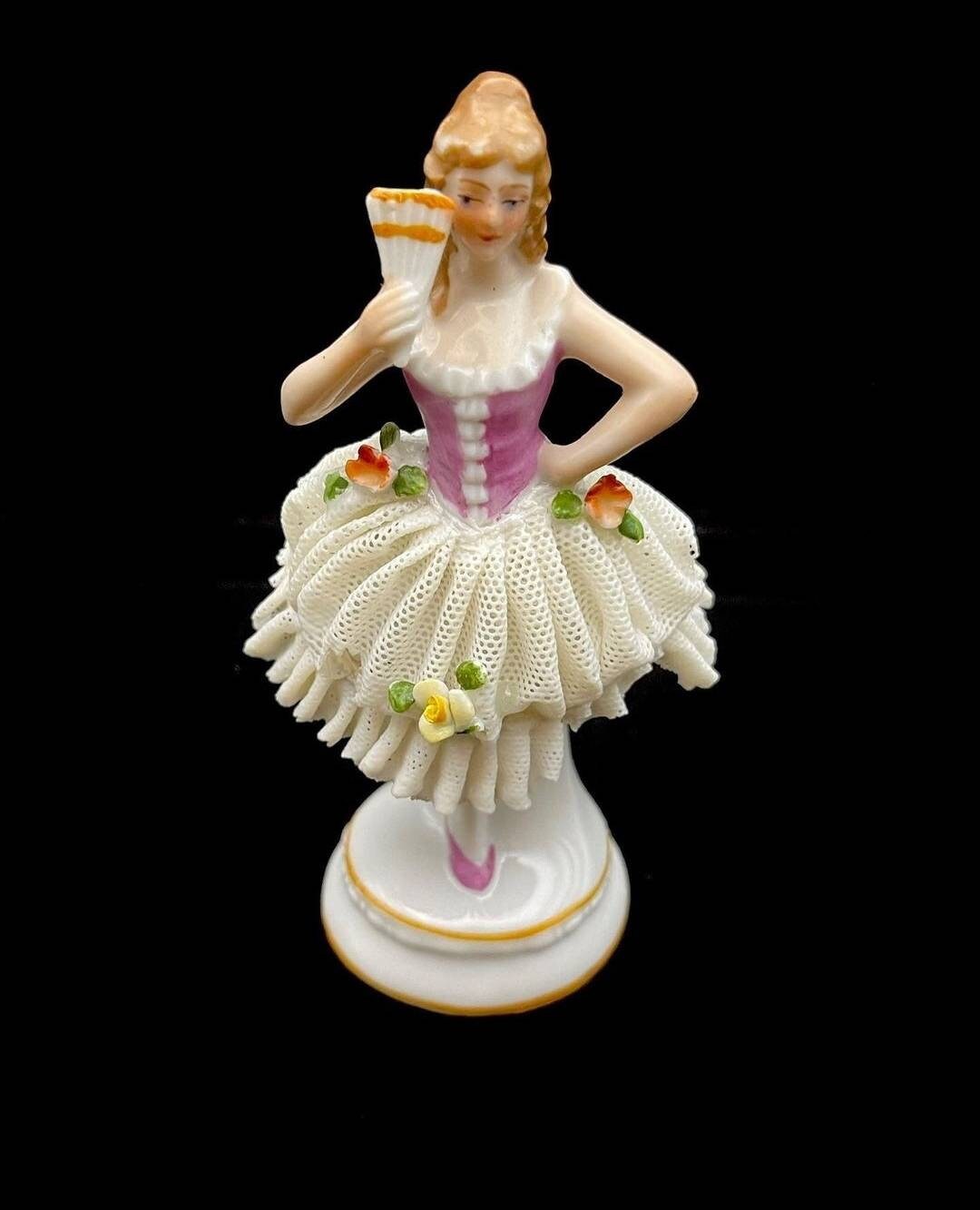 Vintage German Sitzendorf Lace Porcelain Figurine. The mark was used after 1918. She has all her fingers with no damage noted on them. She has a lace dress and have some damage to the lace. Please see the photos showing the damage. There are many lace porcelain marks but Sitzendorf is very rare.