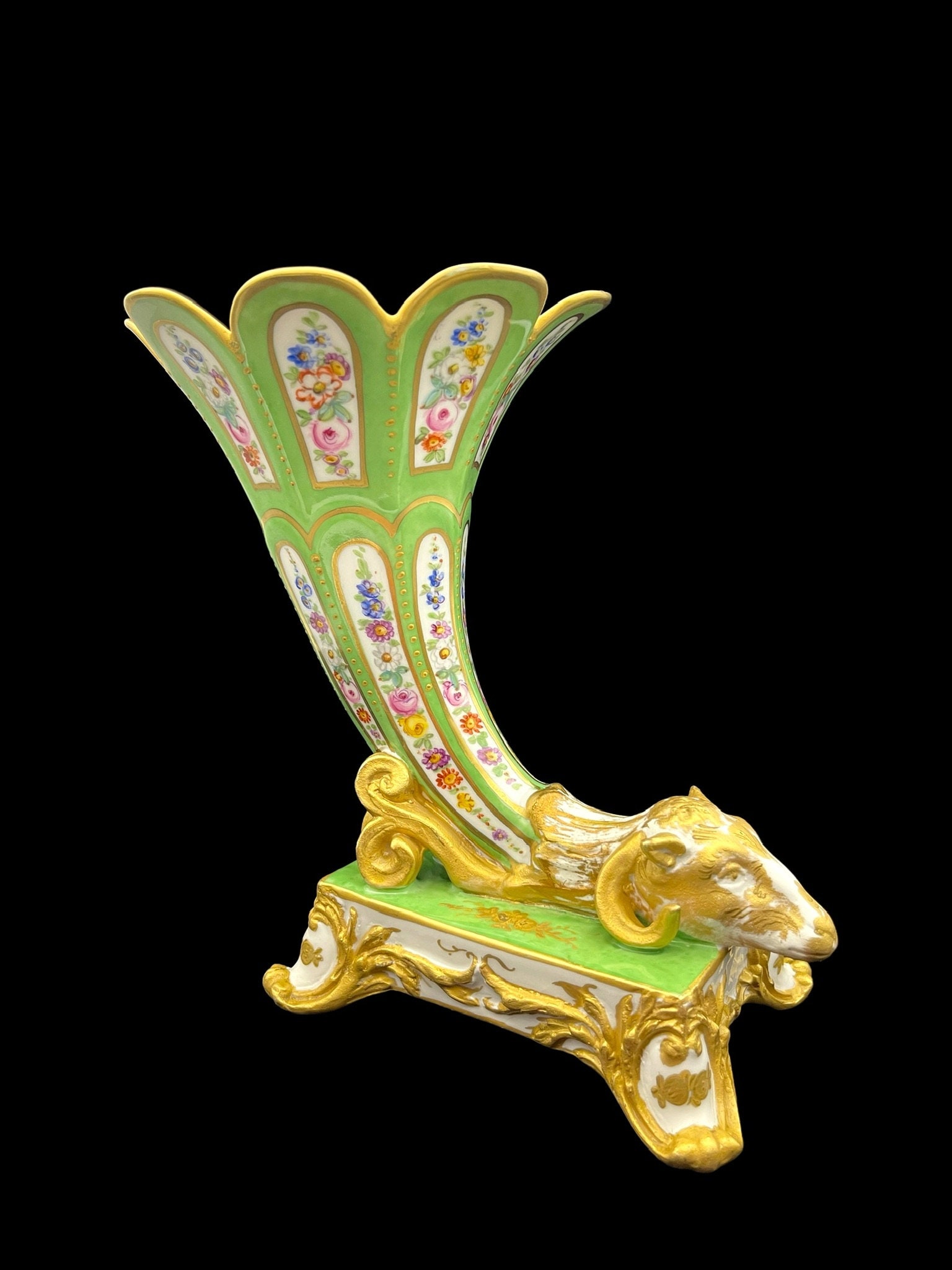 Introducing an exceptional and rare Bourdois & Bloch Paris Porcelain Cornucopia vase that will leave you in awe! This stunning antique piece is an absolute treasure, and it's no surprise that it has been handcrafted to perfection.