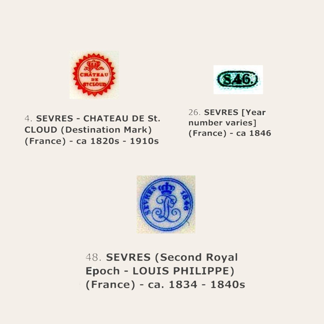 This wall plate is a rare gem, handcrafted in France and bearing the prestigious Sevres stamp, as well as the artist's signature. The intricate hand painting and liquid gold detailing are a testament to the skill and expertise of the artist. This piece is an exceptional example of Sevres porcelain, with three official stamps indicating that it dates back to the period between 1834-1846.