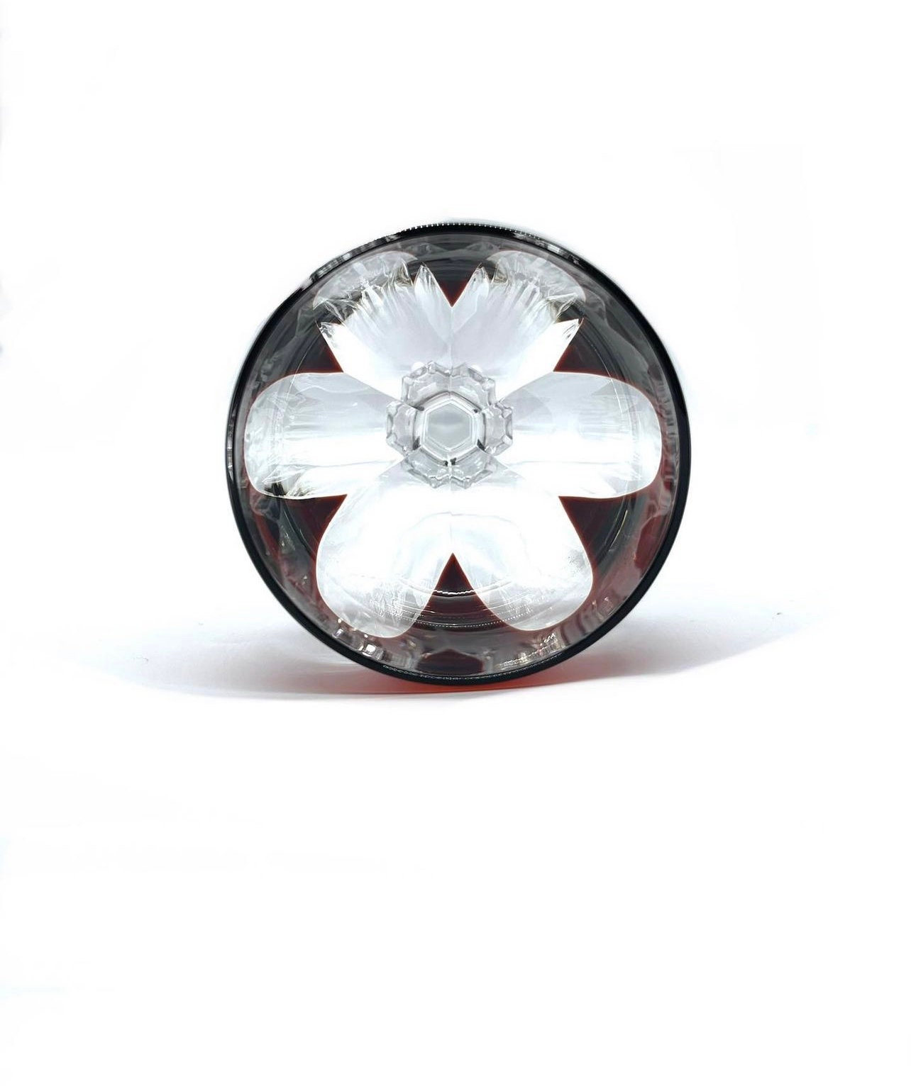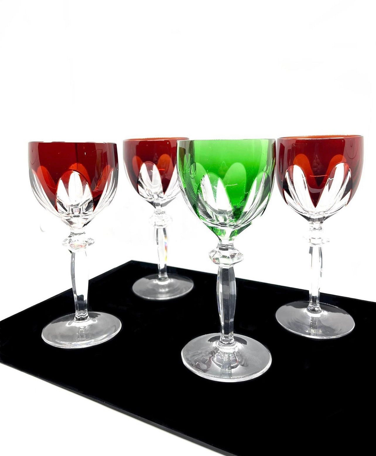 The set includes three red glasses and one green, each boasting a paneled cut-to-clear design that exudes modern elegance while upholding a timeless style. Each glass stands 19 cm tall (approximately 7.5 inches) with a diameter of 8 cm (about 3.1 inches), offering a generous capacity.
