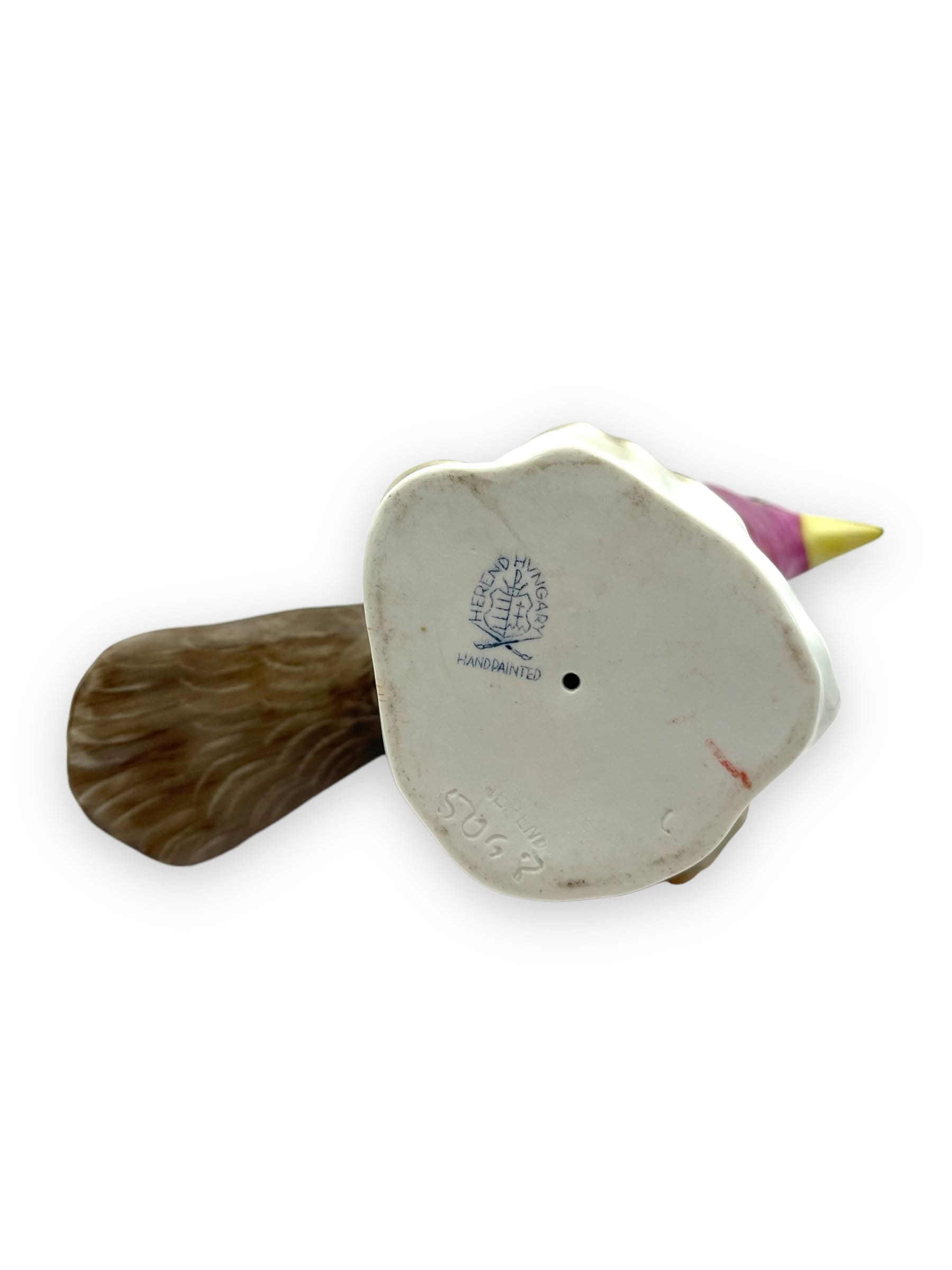 The figurine is handmade, a characteristic trait of Herend products, enhancing its uniqueness. It is in excellent condition, with no discernible signs of wear such as stains, chips, scratches, or damage. This figurine could serve as a standalone piece or part of a larger Herend or porcelain bird collection.