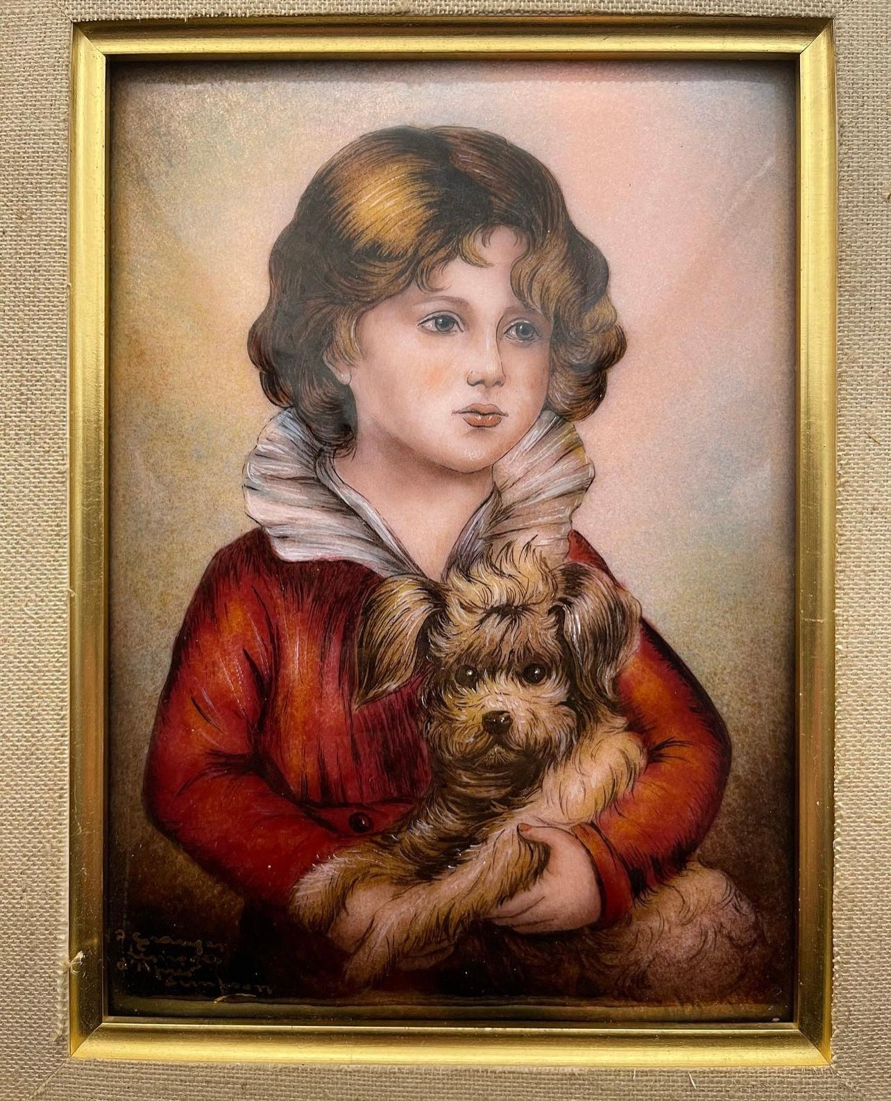 This stunning enamel wall decor is a reproduction of the artwork “Master Simpson” by the renowned English painter Arthur William Devis, who lived between 1763 and 1822.