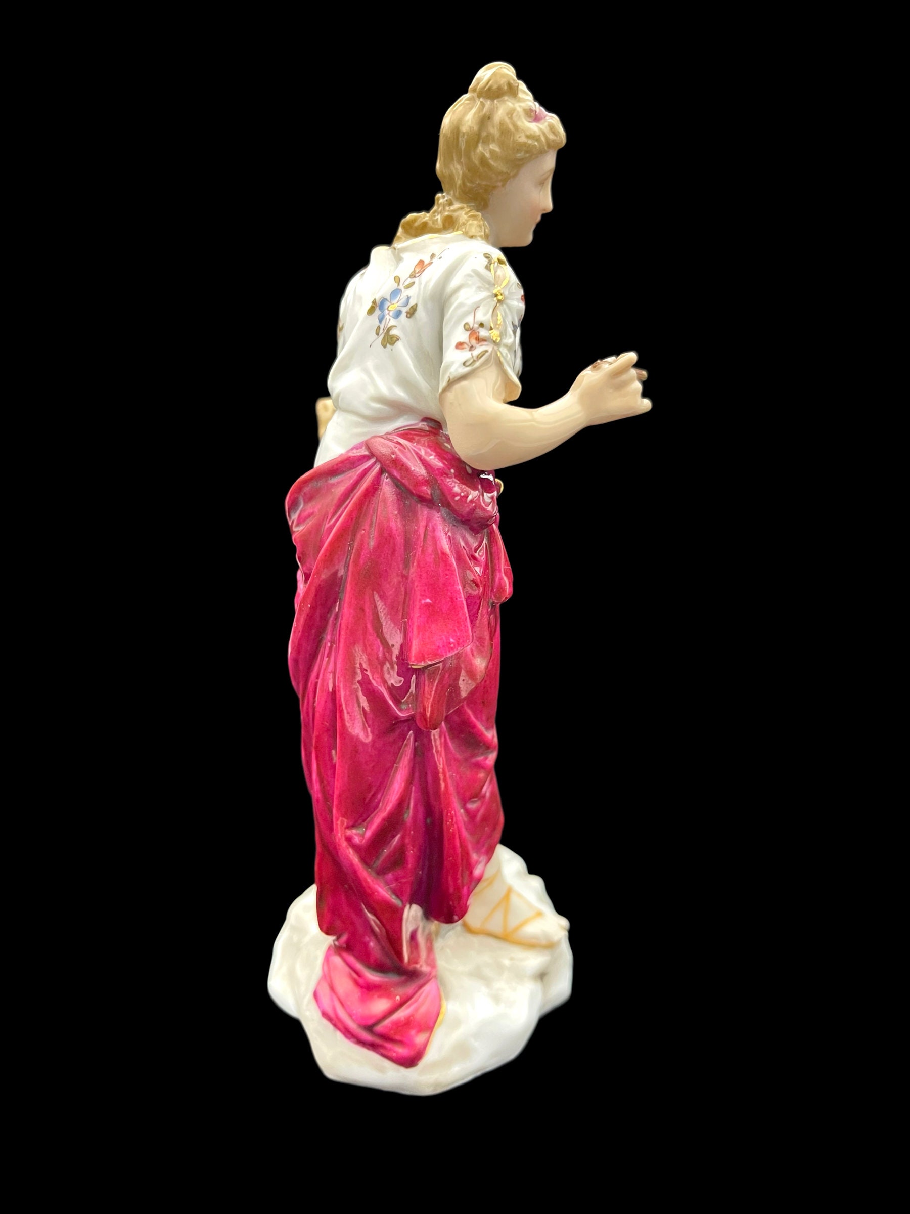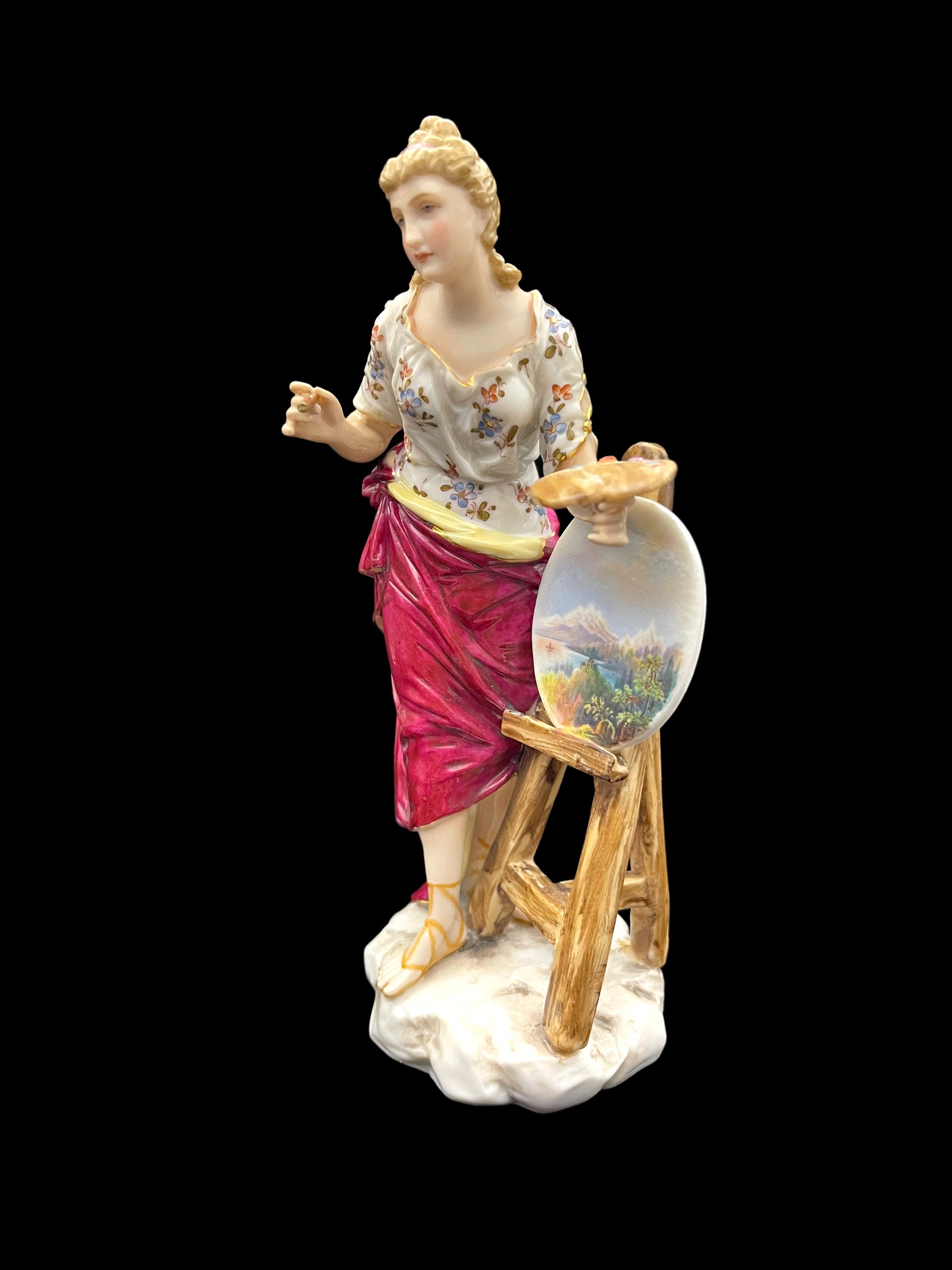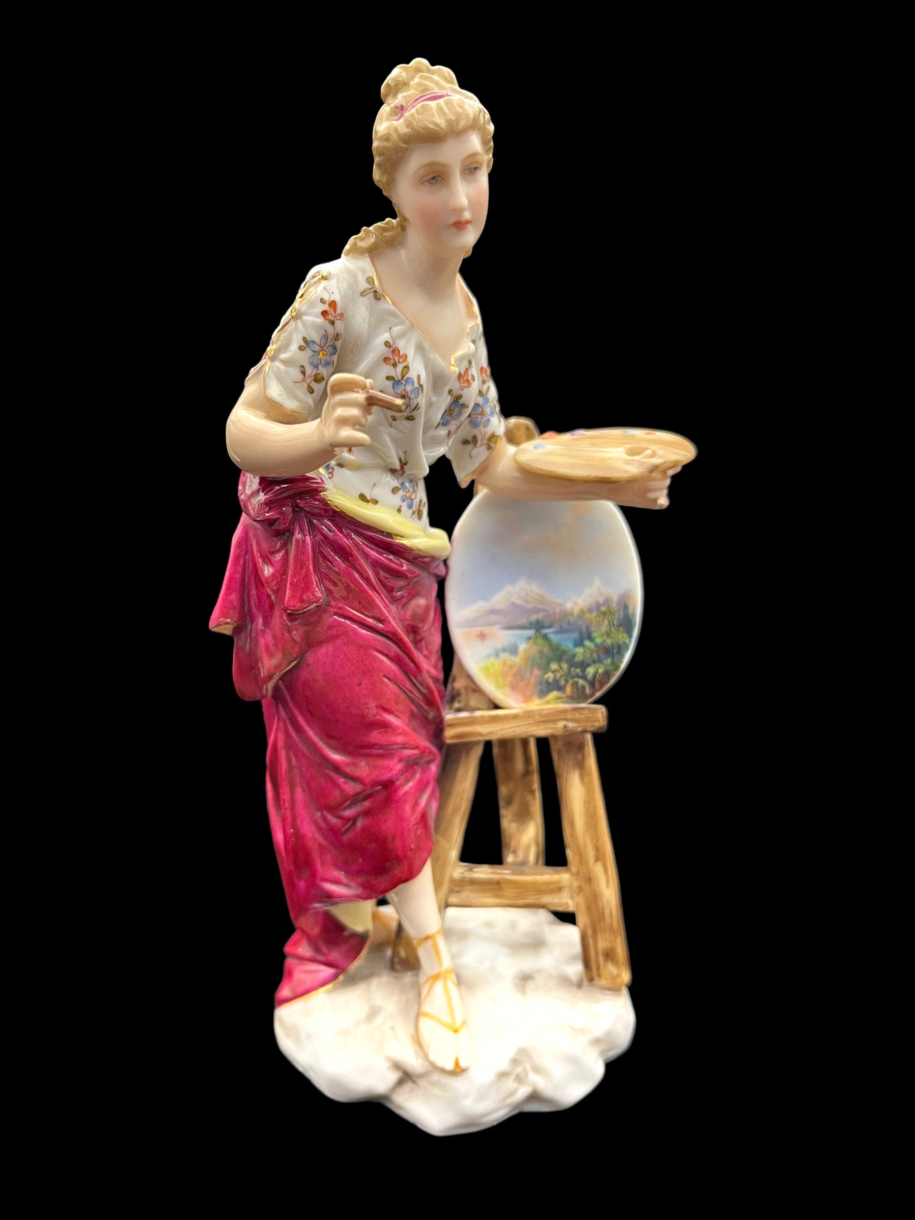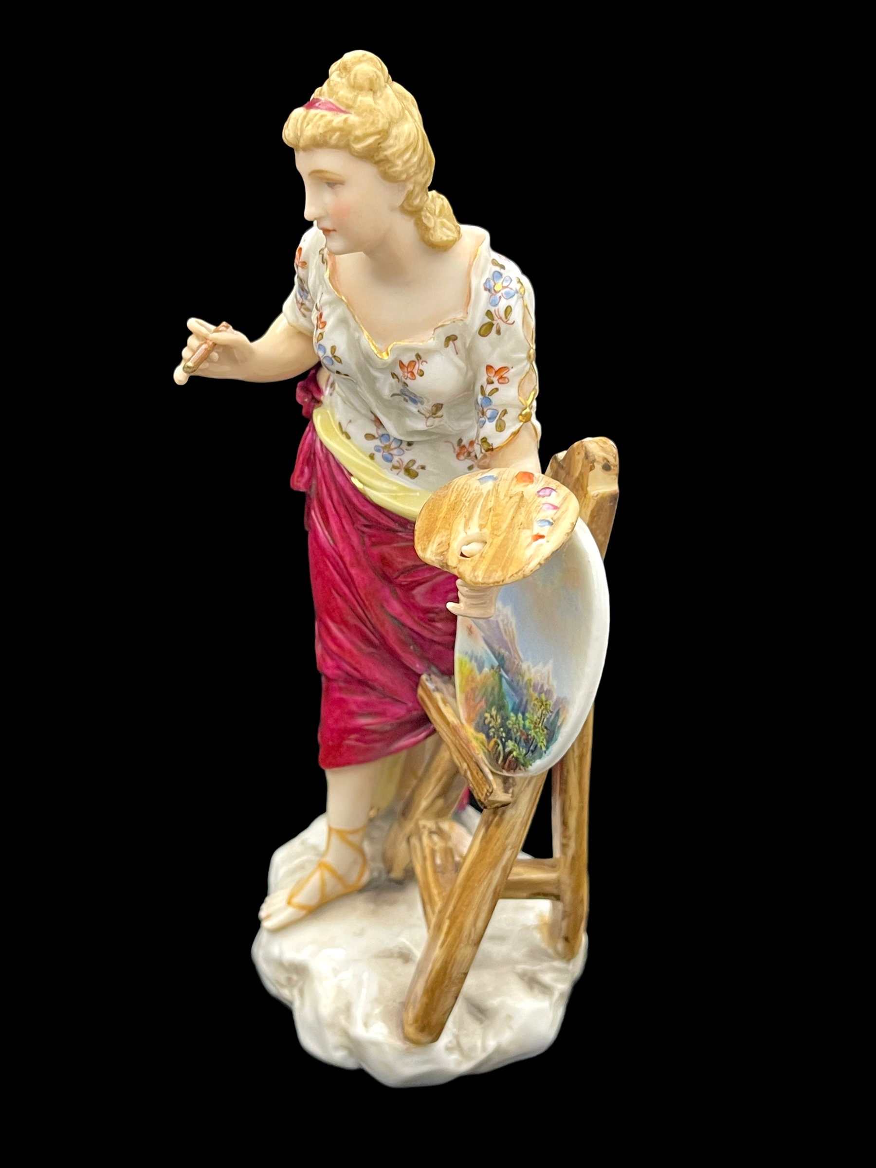 This figurine represents a female artist, immersed in the process of painting. In a remarkable testament to the maker’s skill and attention to detail, even the landscape on the artist’s canvas has been meticulously rendered.