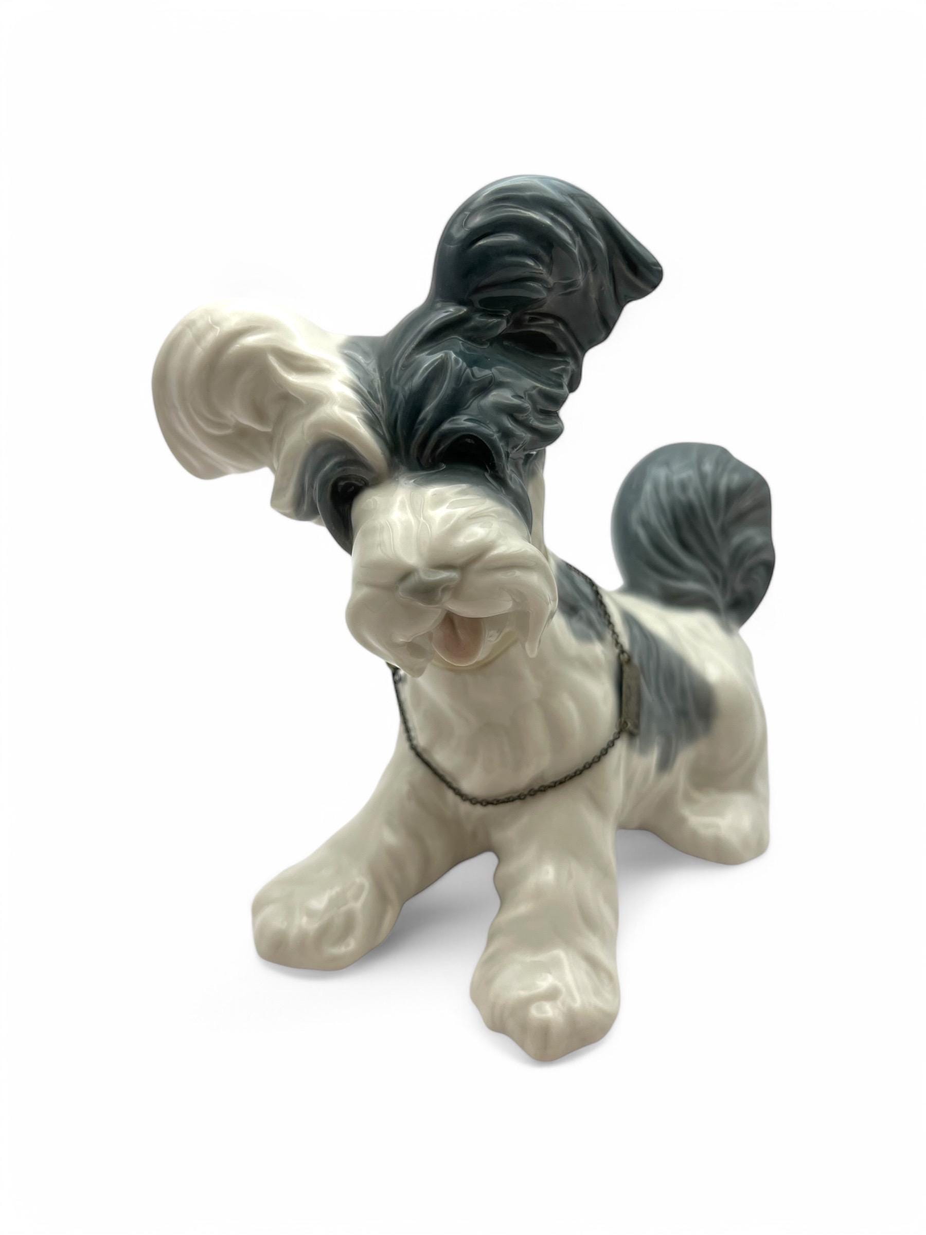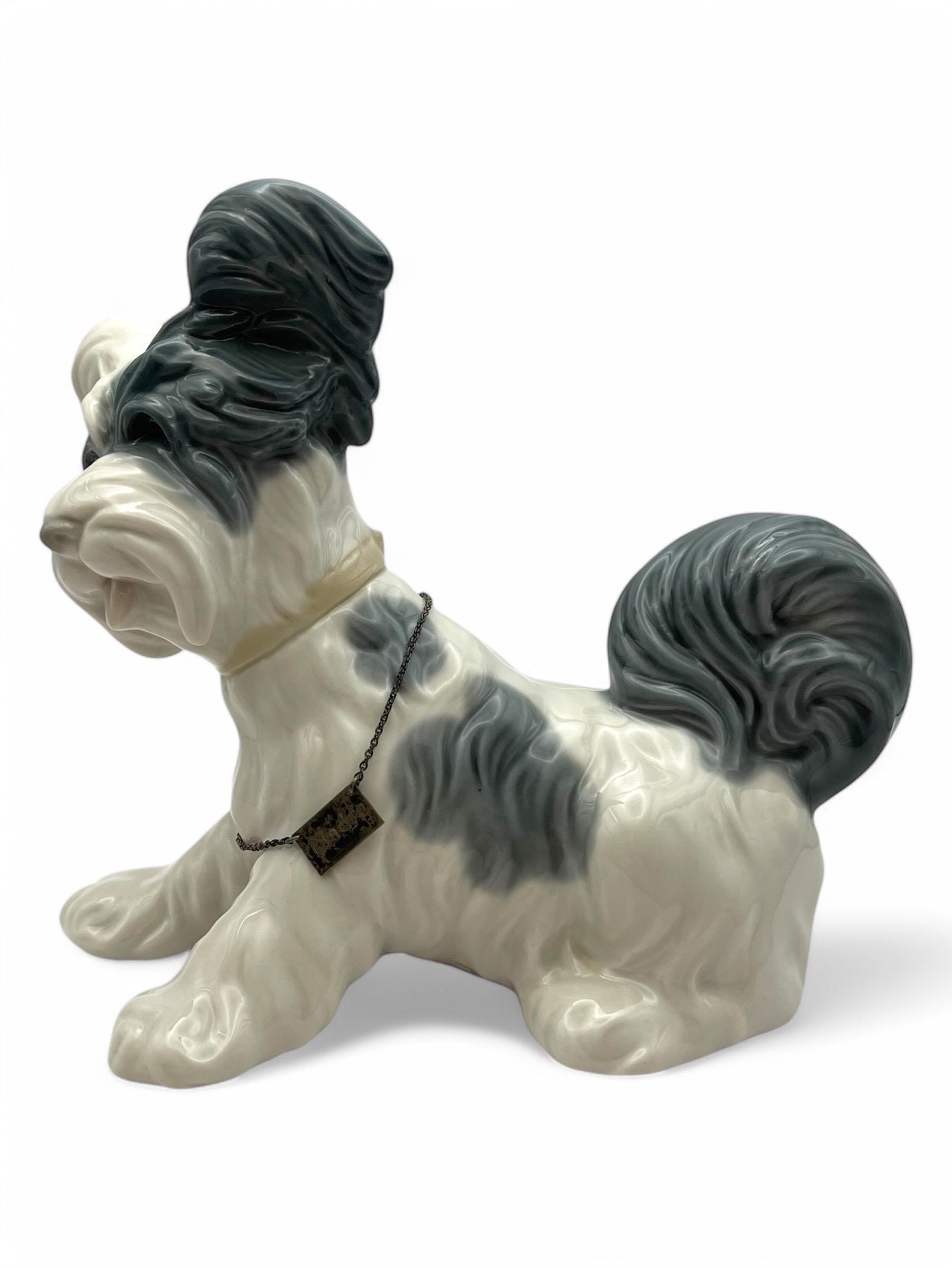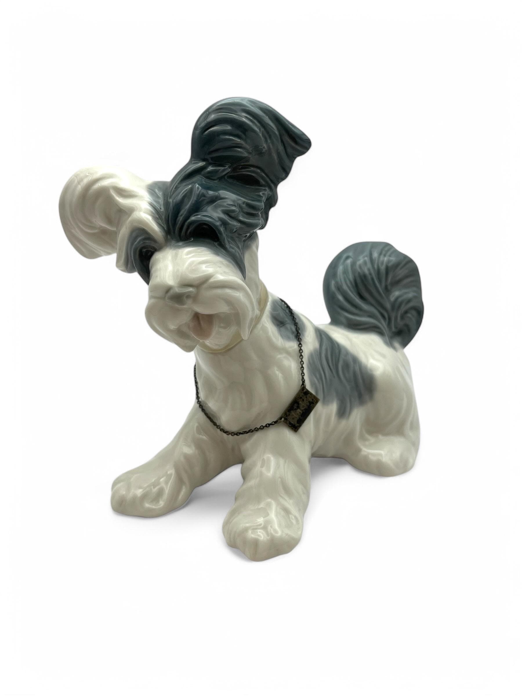 Presenting a magnificent Lladro Skye Terrier figurine, marked with the renowned Spanish Lladro mark. This exquisite piece is entirely handcrafted with intricate relief work and meticulous hand-painted details.