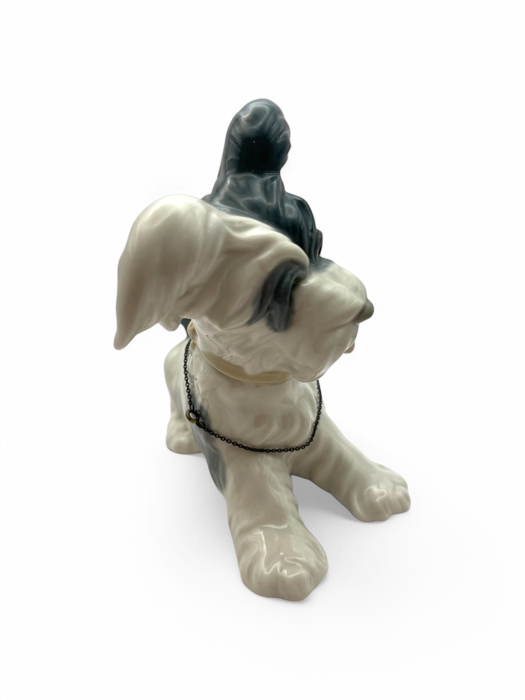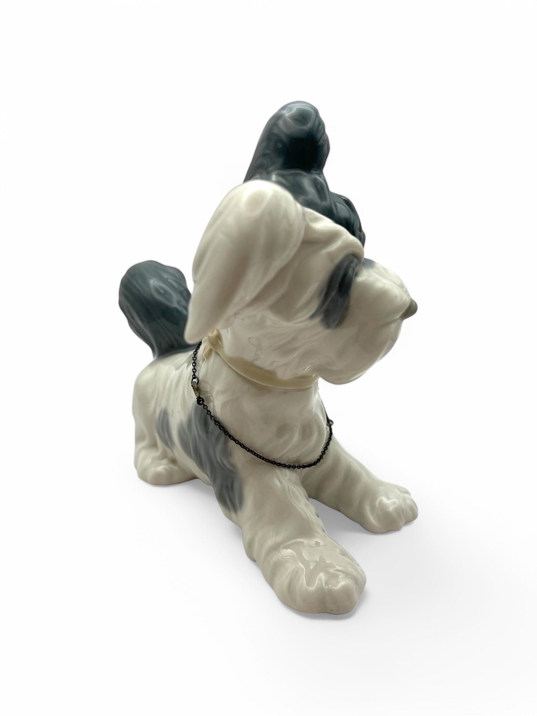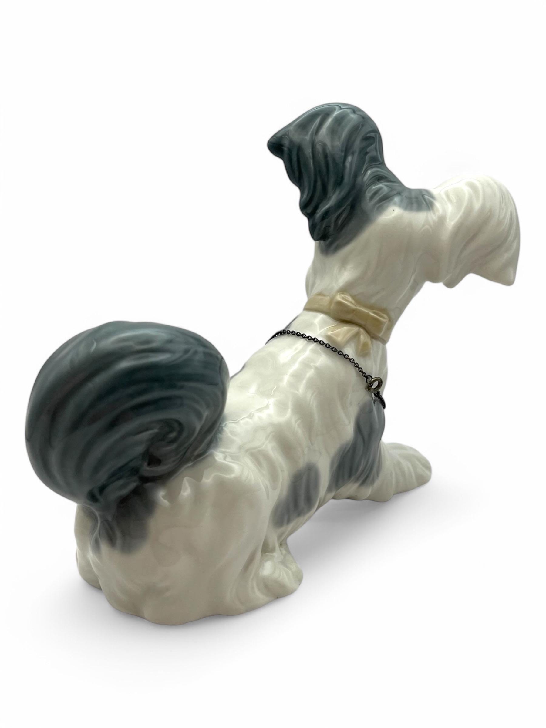 Presenting a magnificent Lladro Skye Terrier figurine, marked with the renowned Spanish Lladro mark. This exquisite piece is entirely handcrafted with intricate relief work and meticulous hand-painted details.