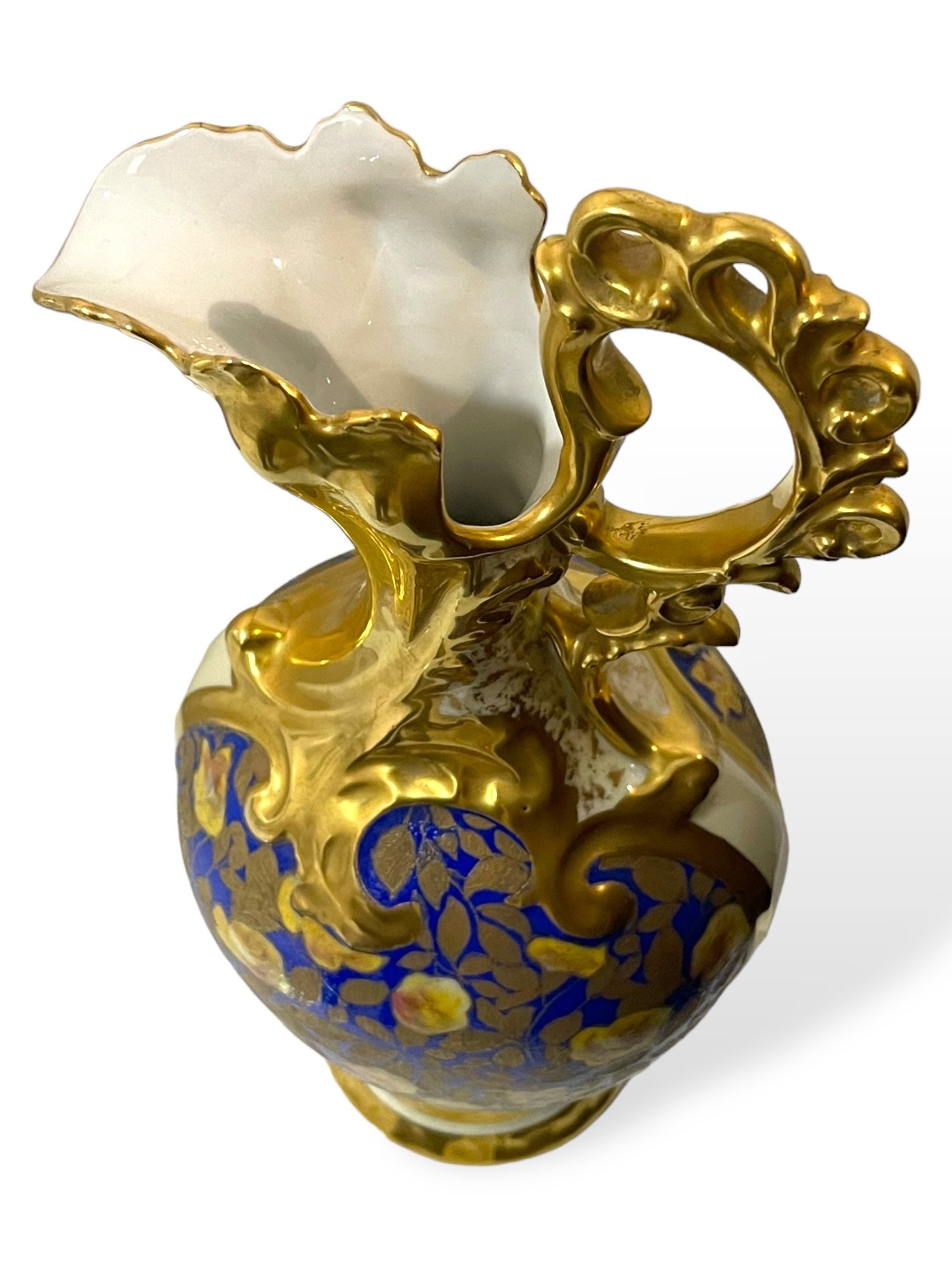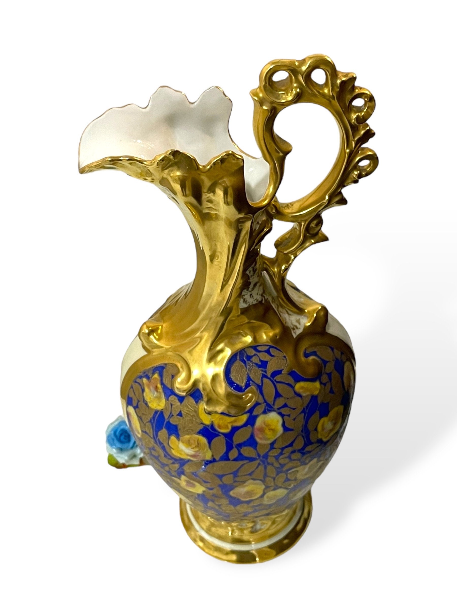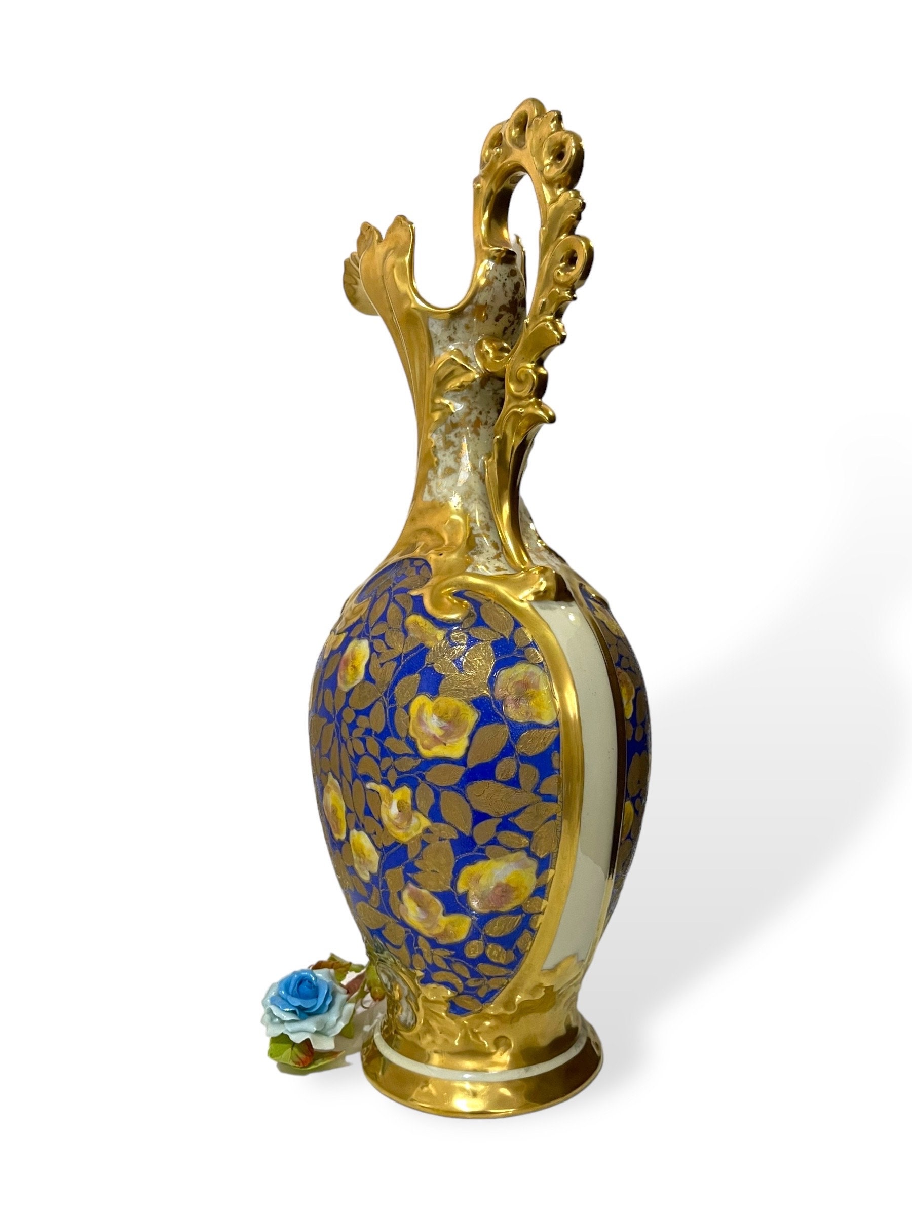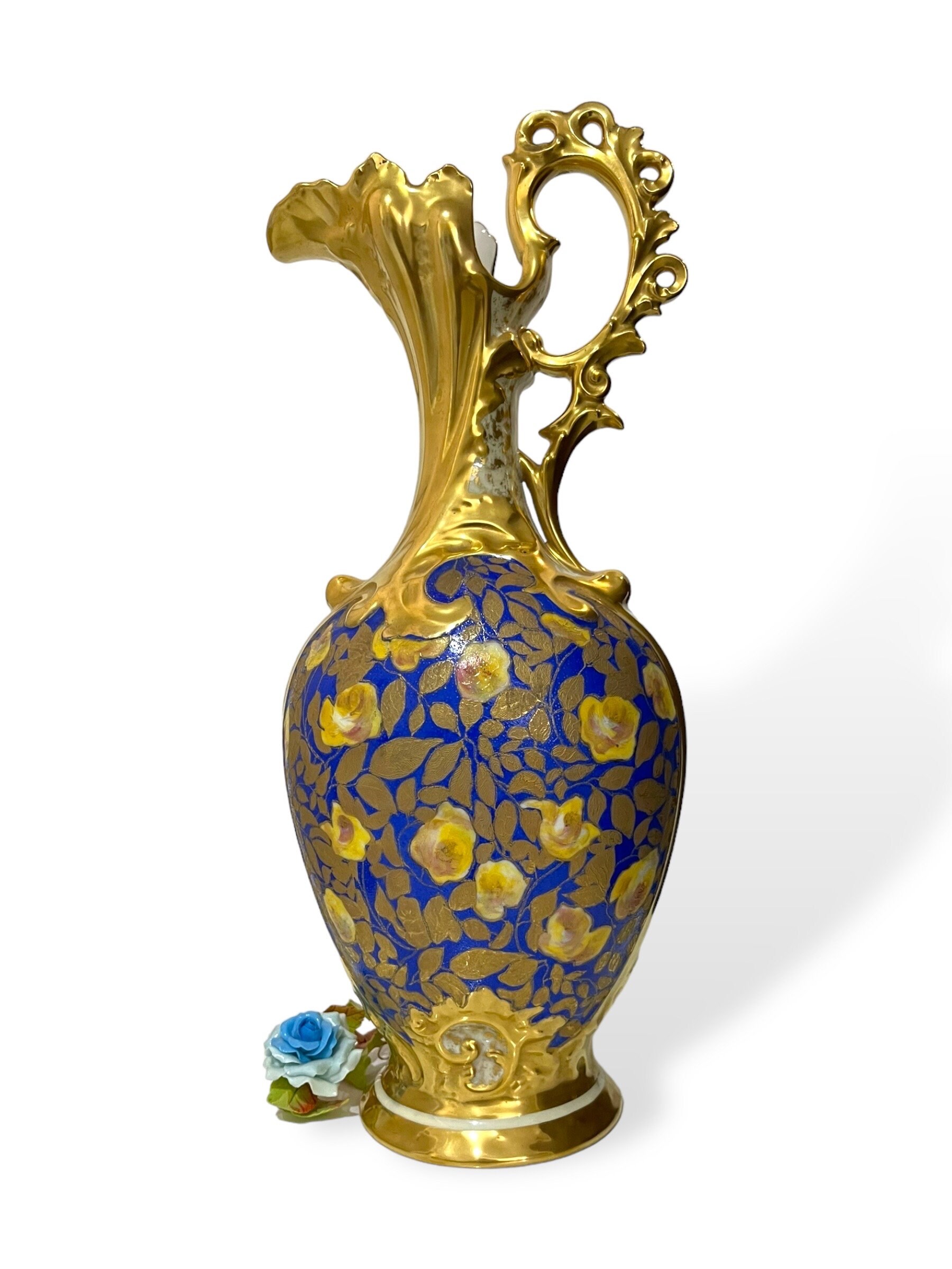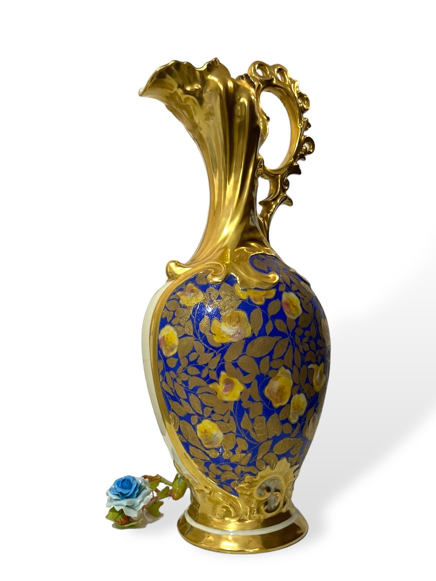 This striking early 20th-century French Limoges vase, adorned with gold gilding, is a true masterpiece of handcrafted artistry. Standing tall at 40 cm (approximately 15.75 inches), its vibrant cobalt blue surface is elegantly highlighted with hand-painted golden florals. The vase carries the prestigious Limoges mark, a testament to its authenticity and quality. In impeccable condition, this piece is a collector’s dream and an opulent addition to any refined décor.