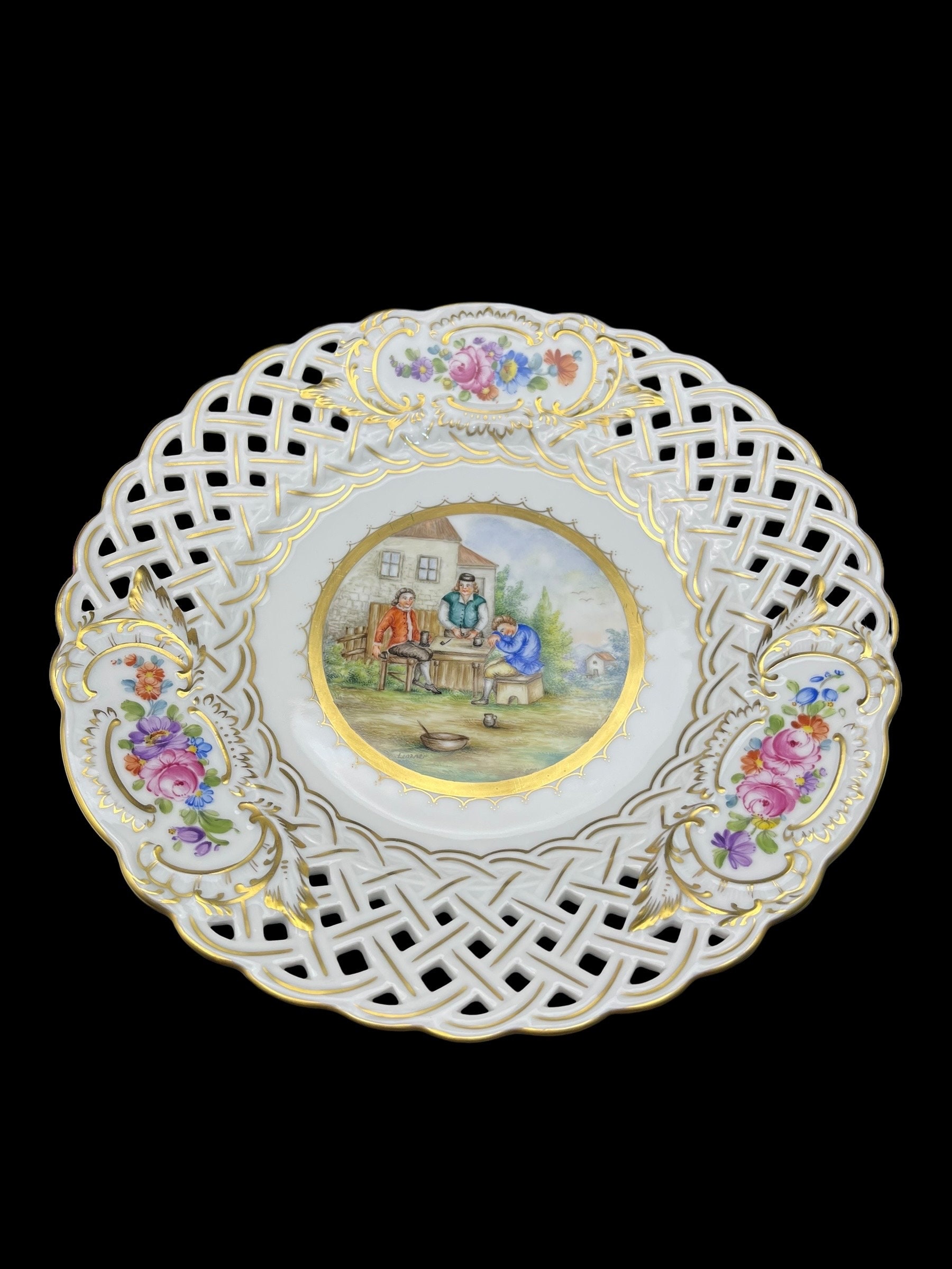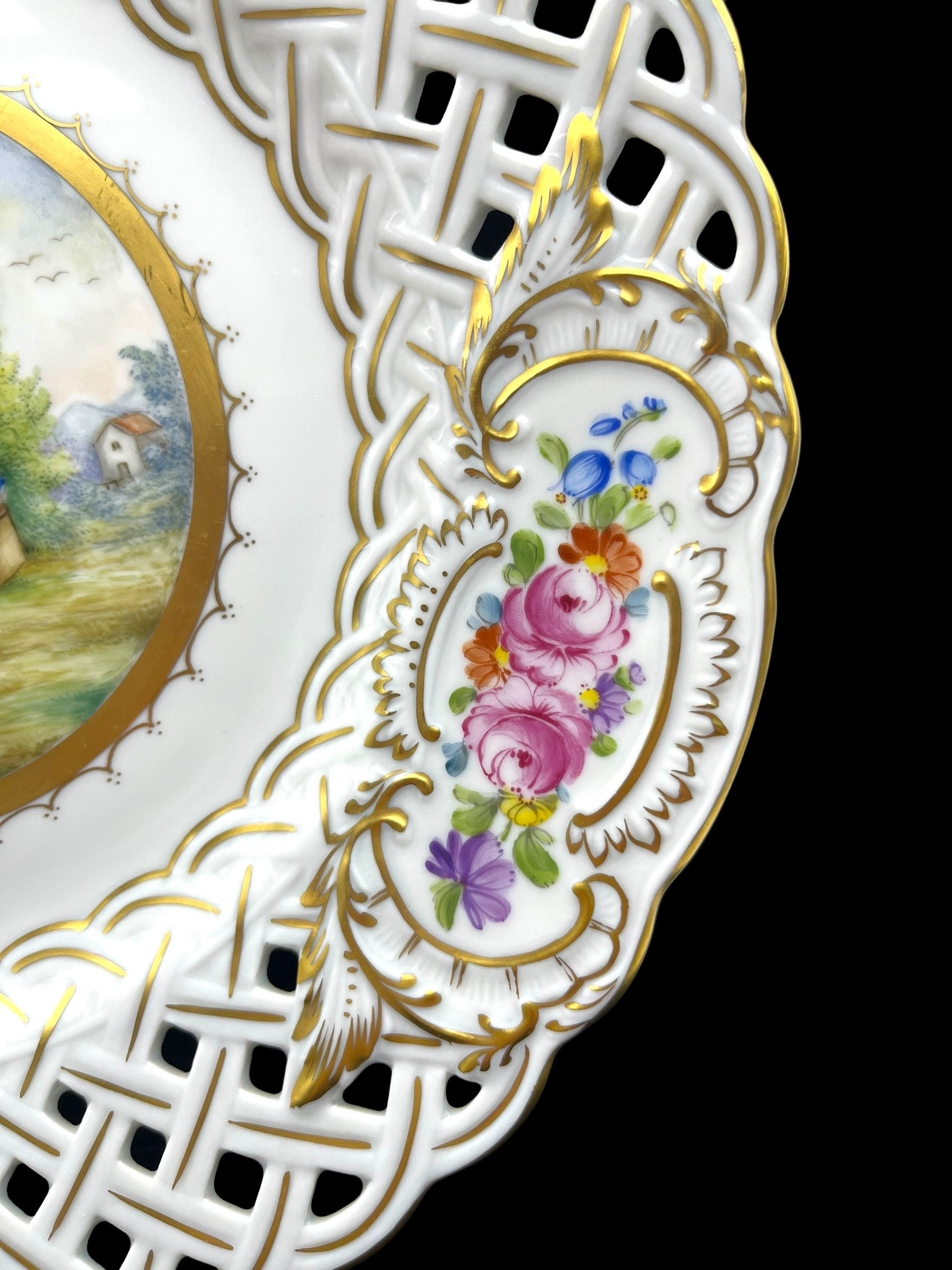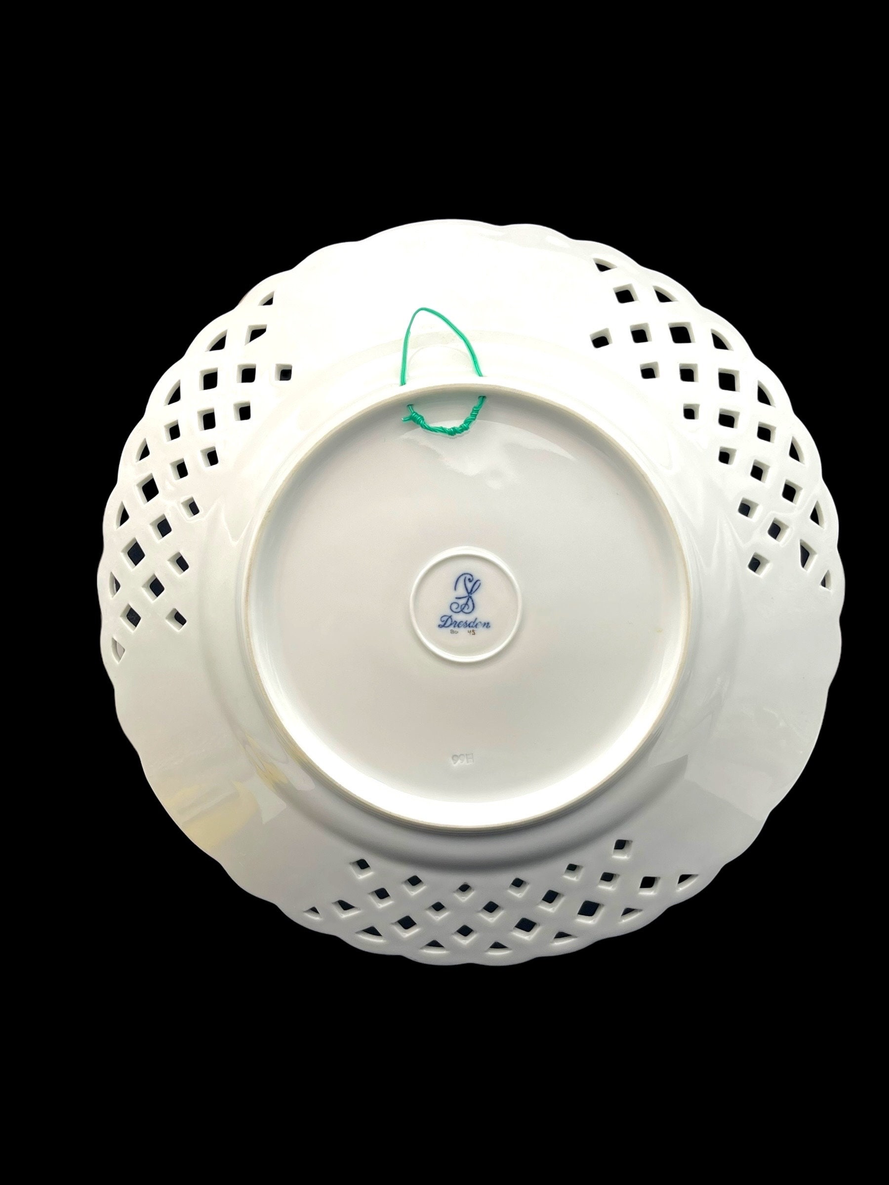 Handmade Antique Carl Thieme Potschappel Dresden German Porcelain Wall Plate with Reticulated Rim - 23.5 cm (9.25 inches) Diameter