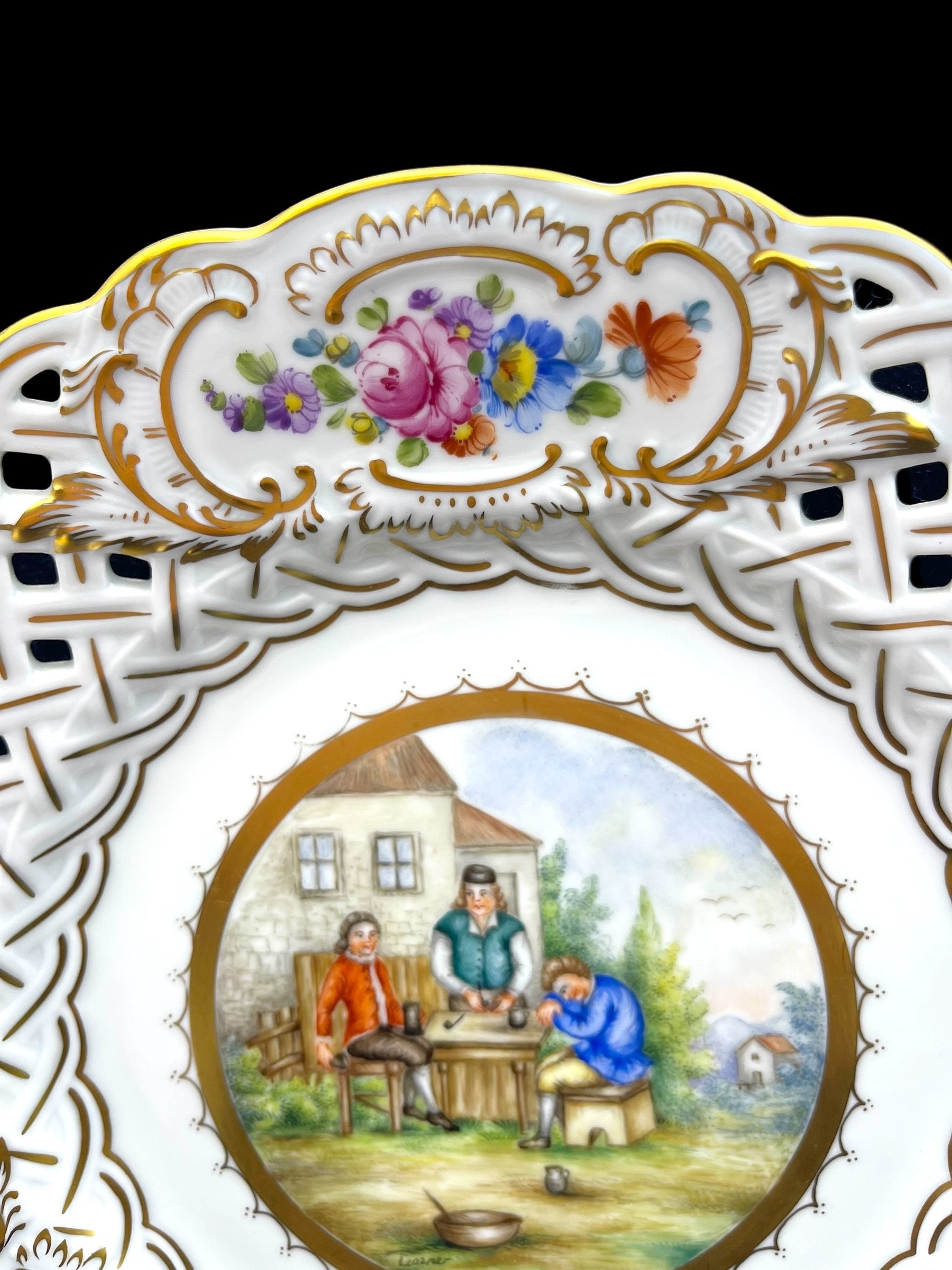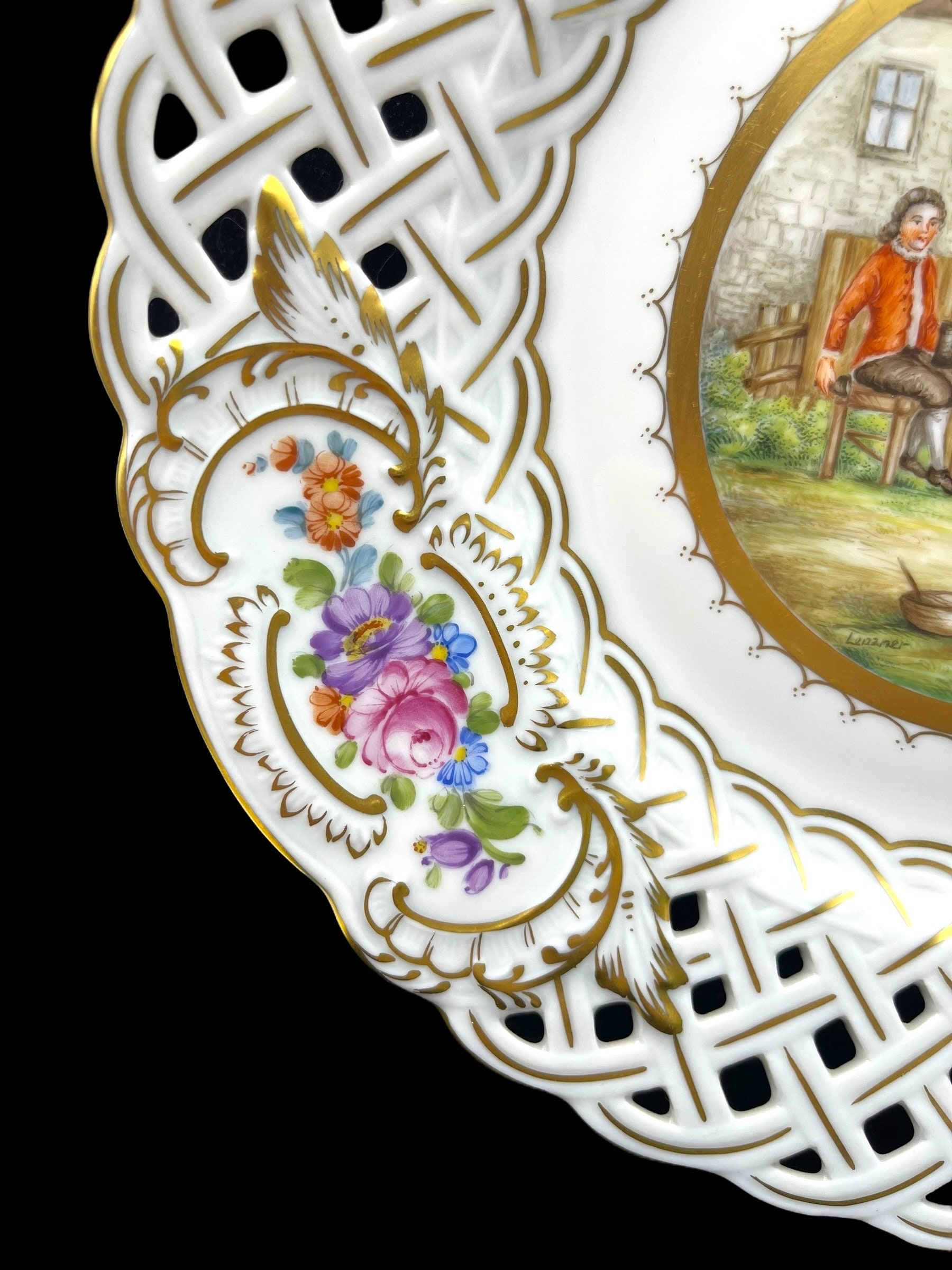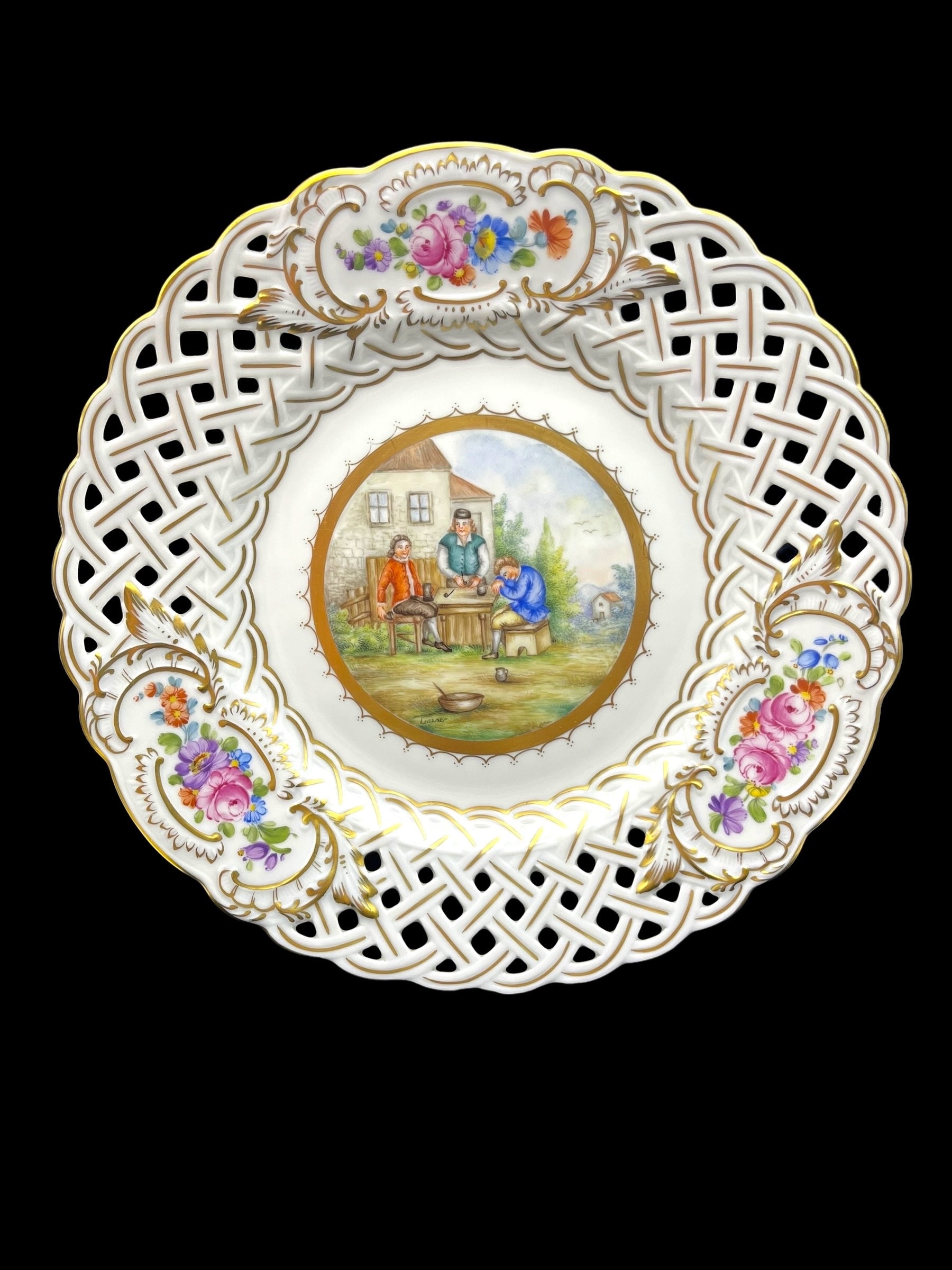 Handmade Antique Carl Thieme Potschappel Dresden German Porcelain Wall Plate with Reticulated Rim - 23.5 cm (9.25 inches) Diameter
