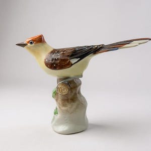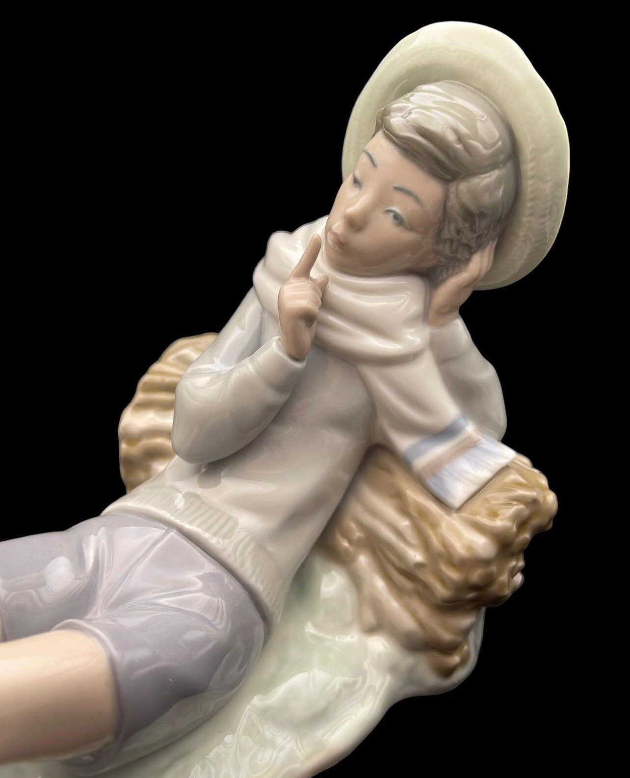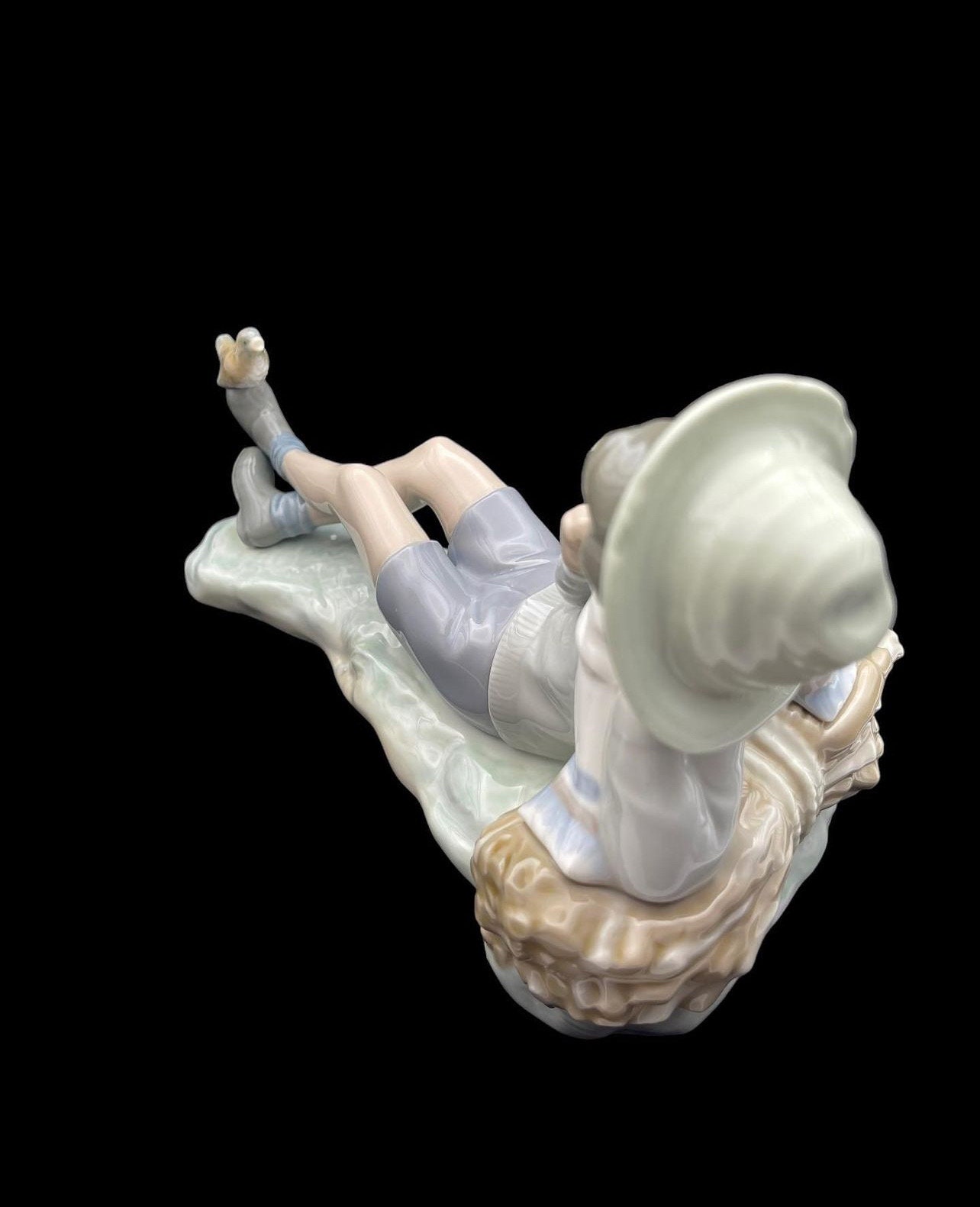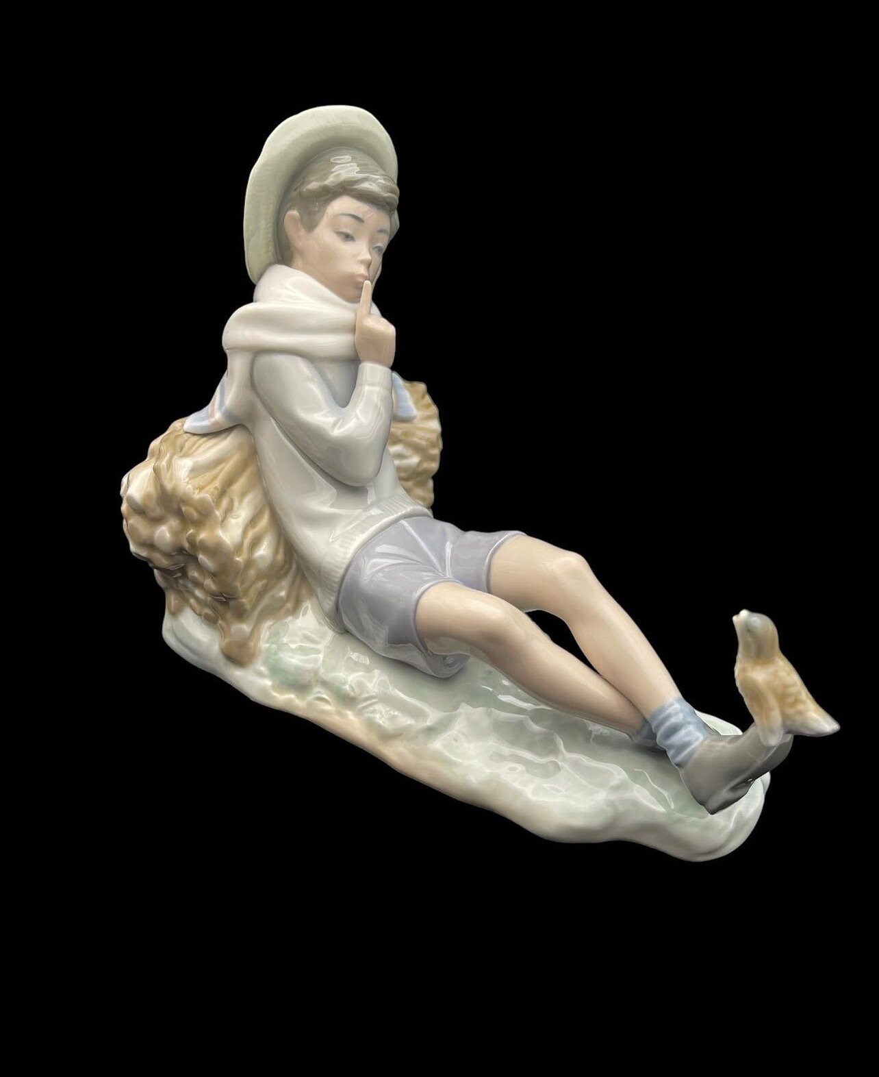 The figurine depicts a serene pastoral scene where a shepherd boy, dressed in a hat and casual clothing, gently interacts with a bird perched on his outstretched foot. The delicate features and soothing pastel colors bring a sense of calm and nostalgia. This rare and beautiful piece would make a perfect addition to any collection or a thoughtful gift for a special occasion.