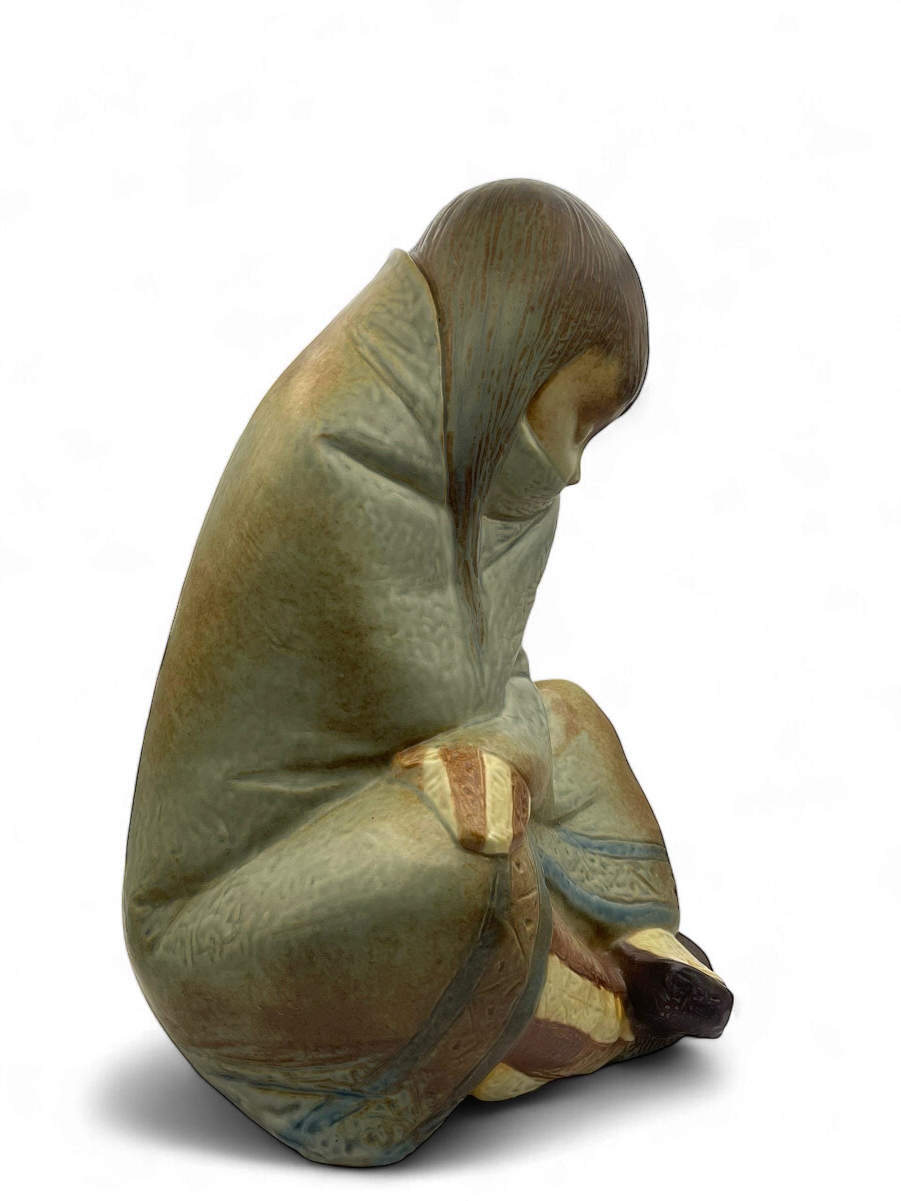 This stunning pair of large porcelain Eskimo figurines stands at 30 cm (11.8 inches) each, showcasing exquisite craftsmanship and intricate detailing. Designed in a style reminiscent of Lladro’s signature artistry, these figures embody elegance and charm.