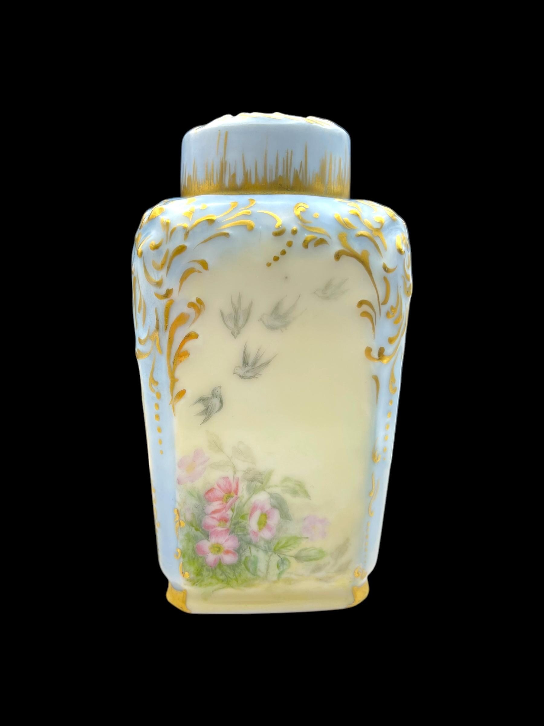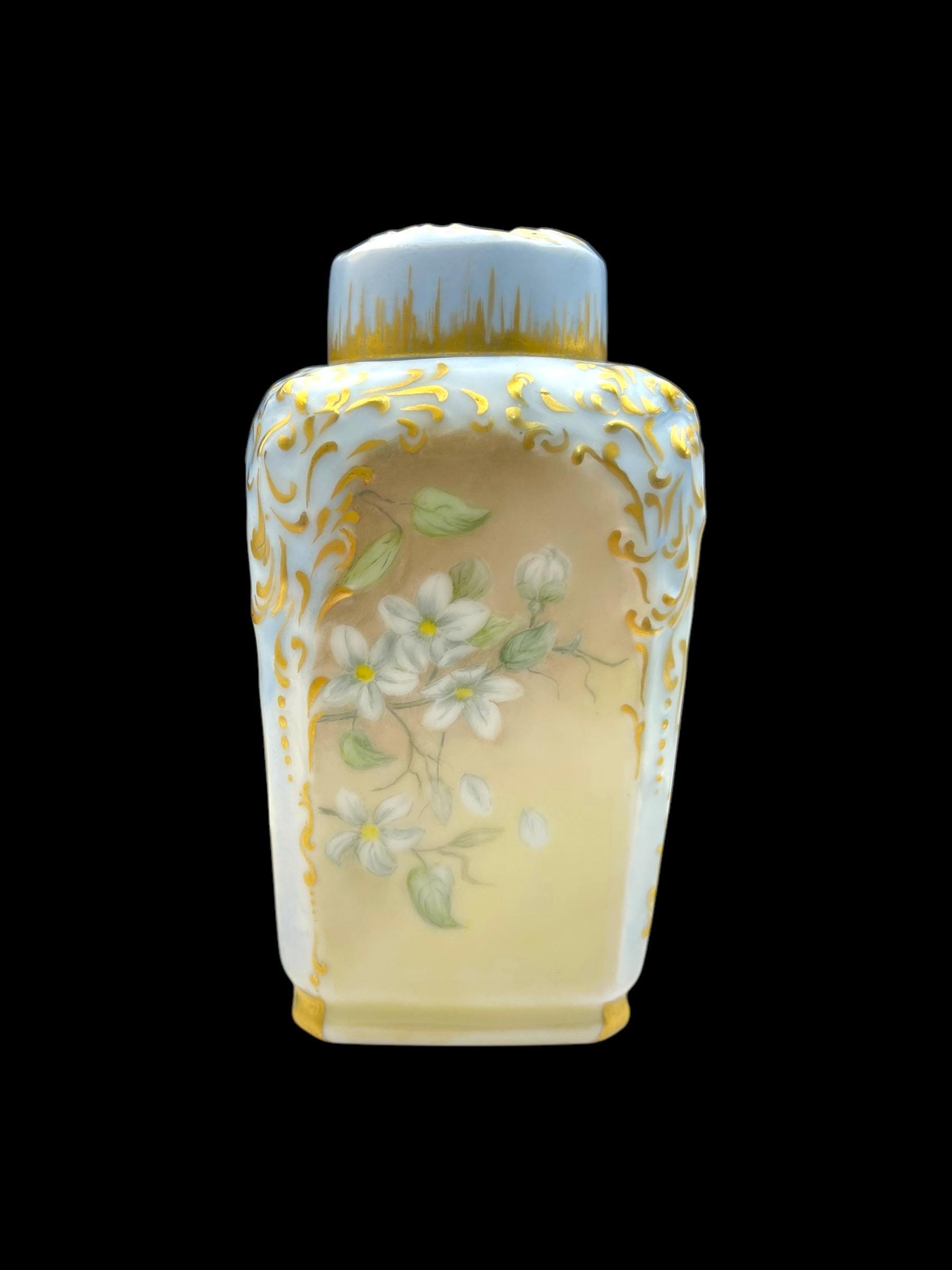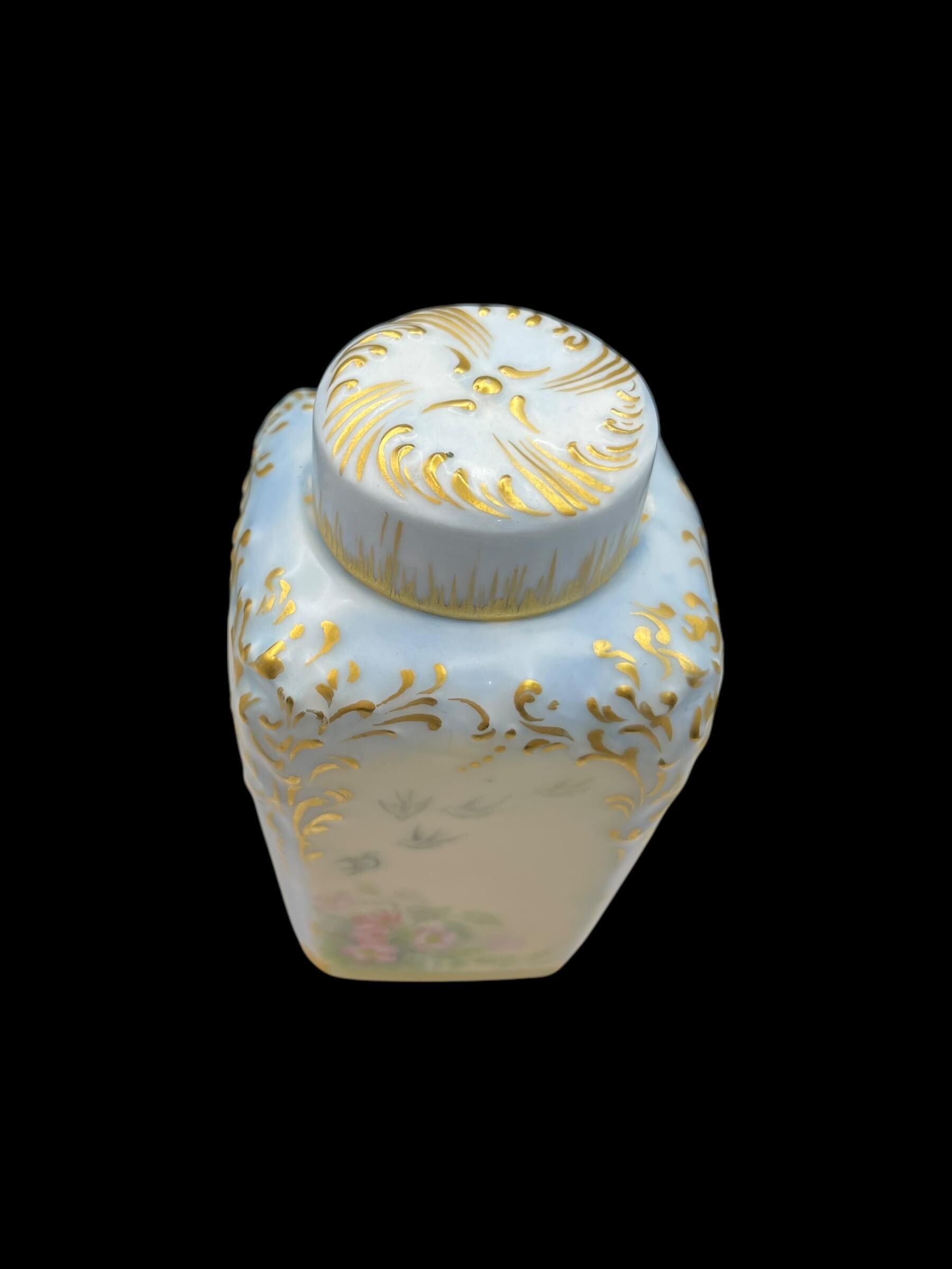 This piece is more than just a tea caddy—it is a collector’s gem, showcasing the artistic finesse and delicate craftsmanship that made Limoges porcelain world-renowned. Perfect for display, or as a refined gift for a tea lover or porcelain enthusiast.