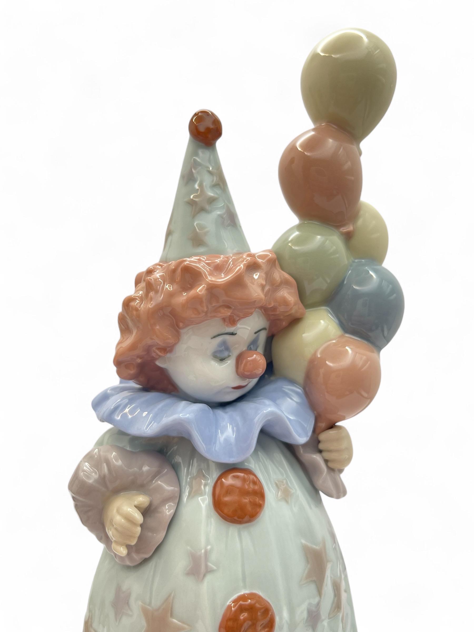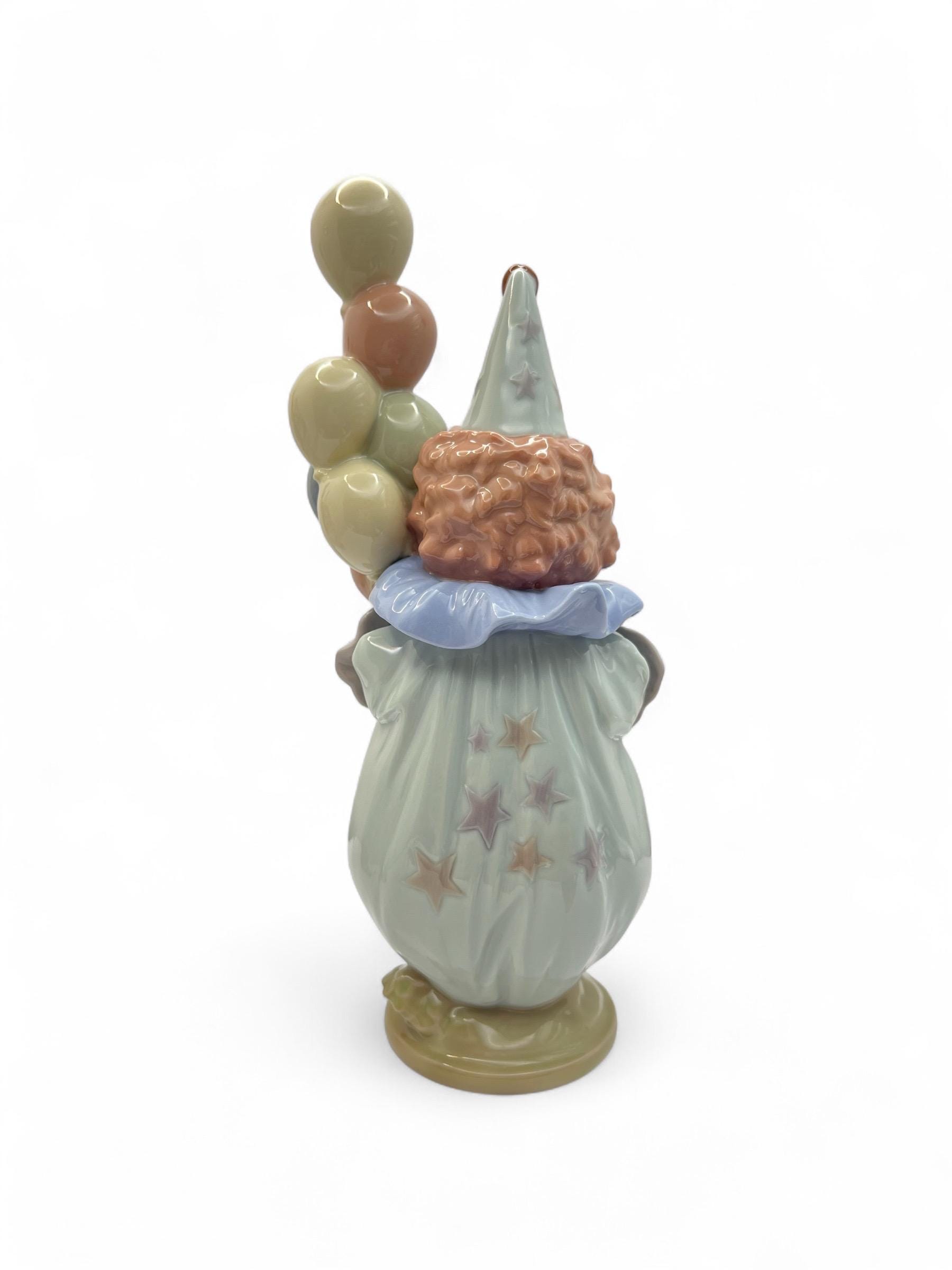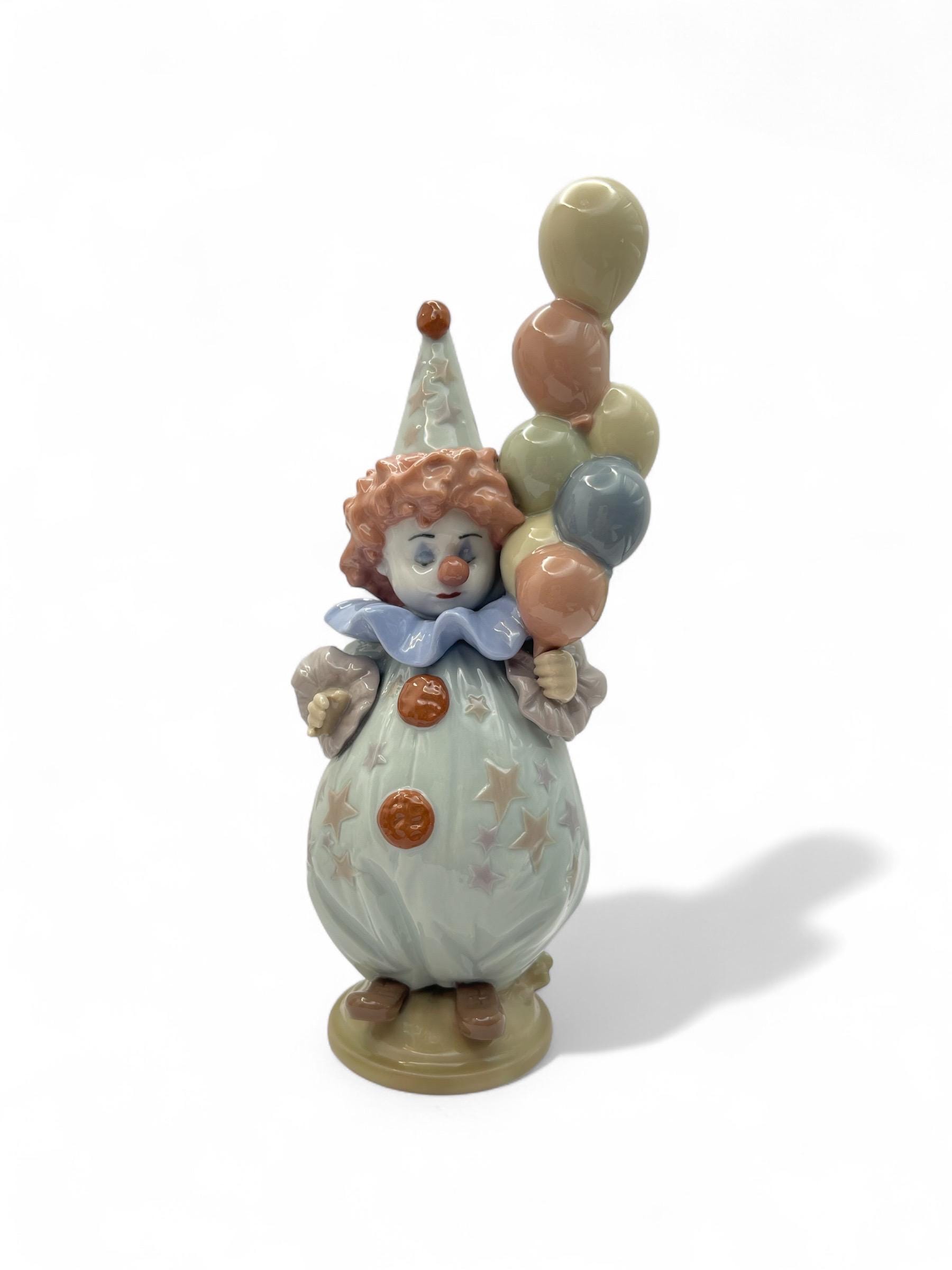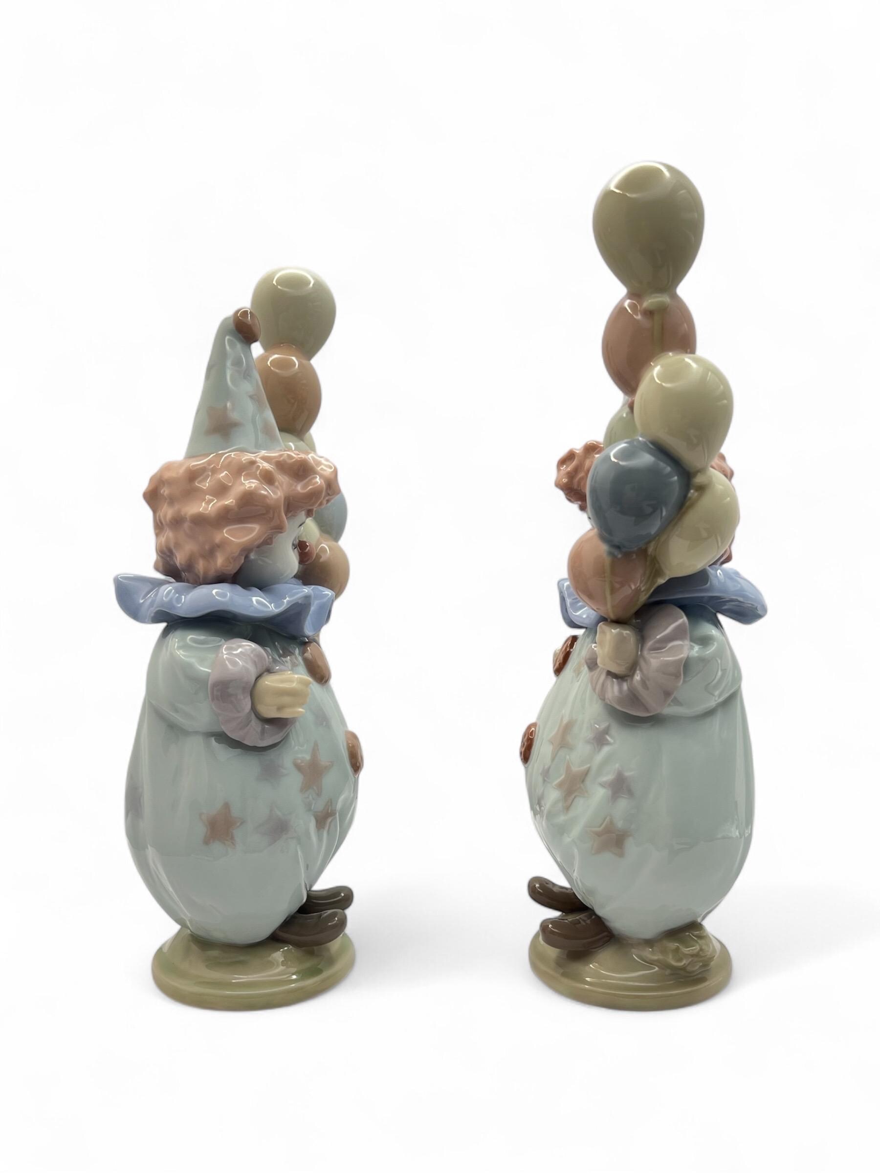 A refined and charming pair of vintage Lladro porcelain figurines, each meticulously hand-crafted and hand-painted in Spain. Featuring two cheerful clowns holding pastel-toned balloons, these pieces reflect Lladro’s signature balance of whimsical subject matter and exquisite craftsmanship.