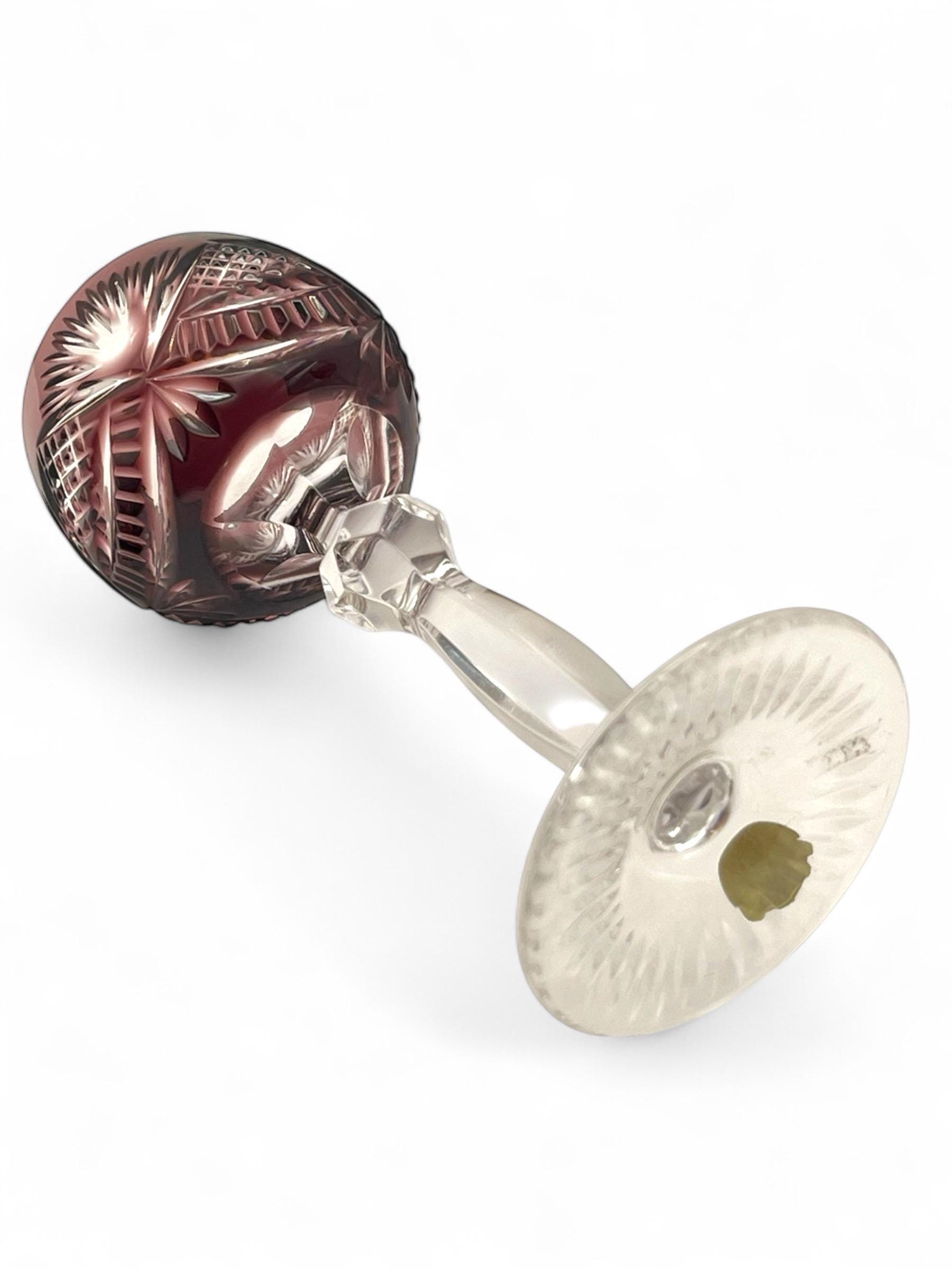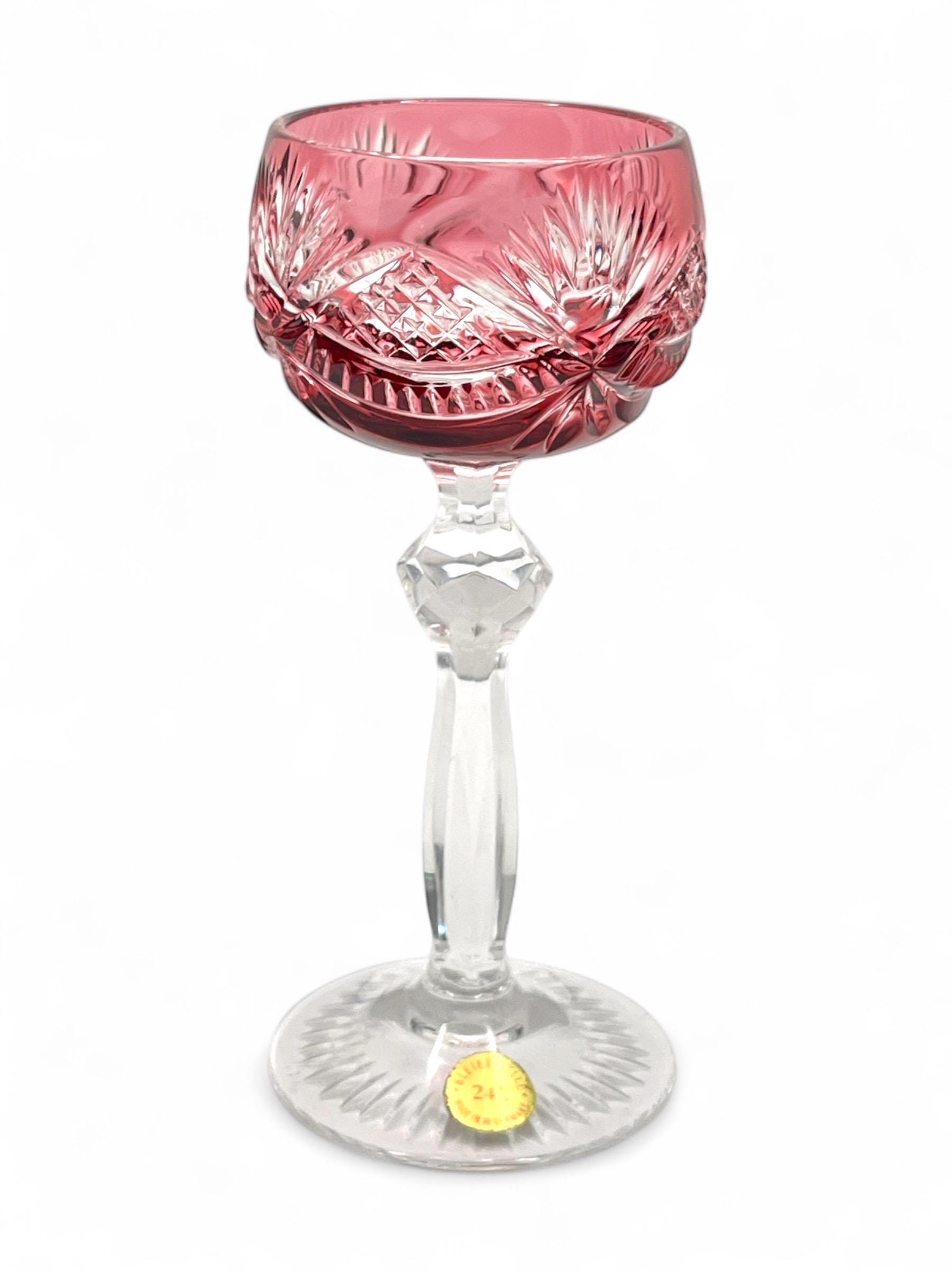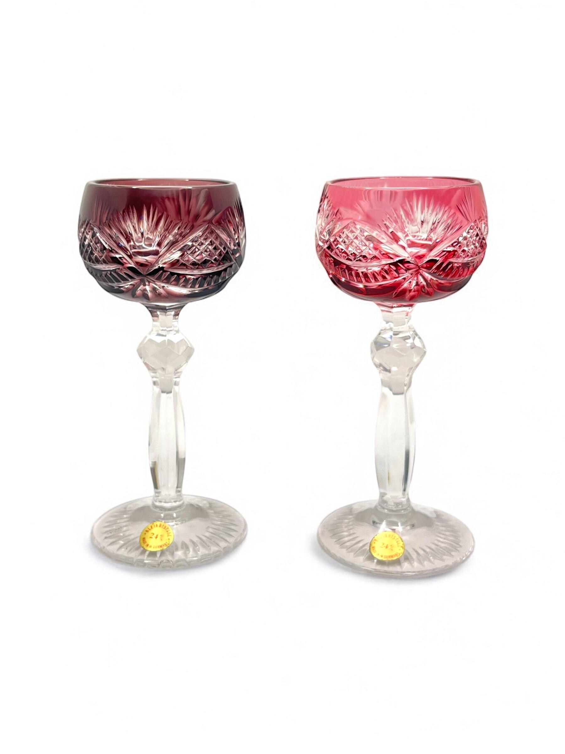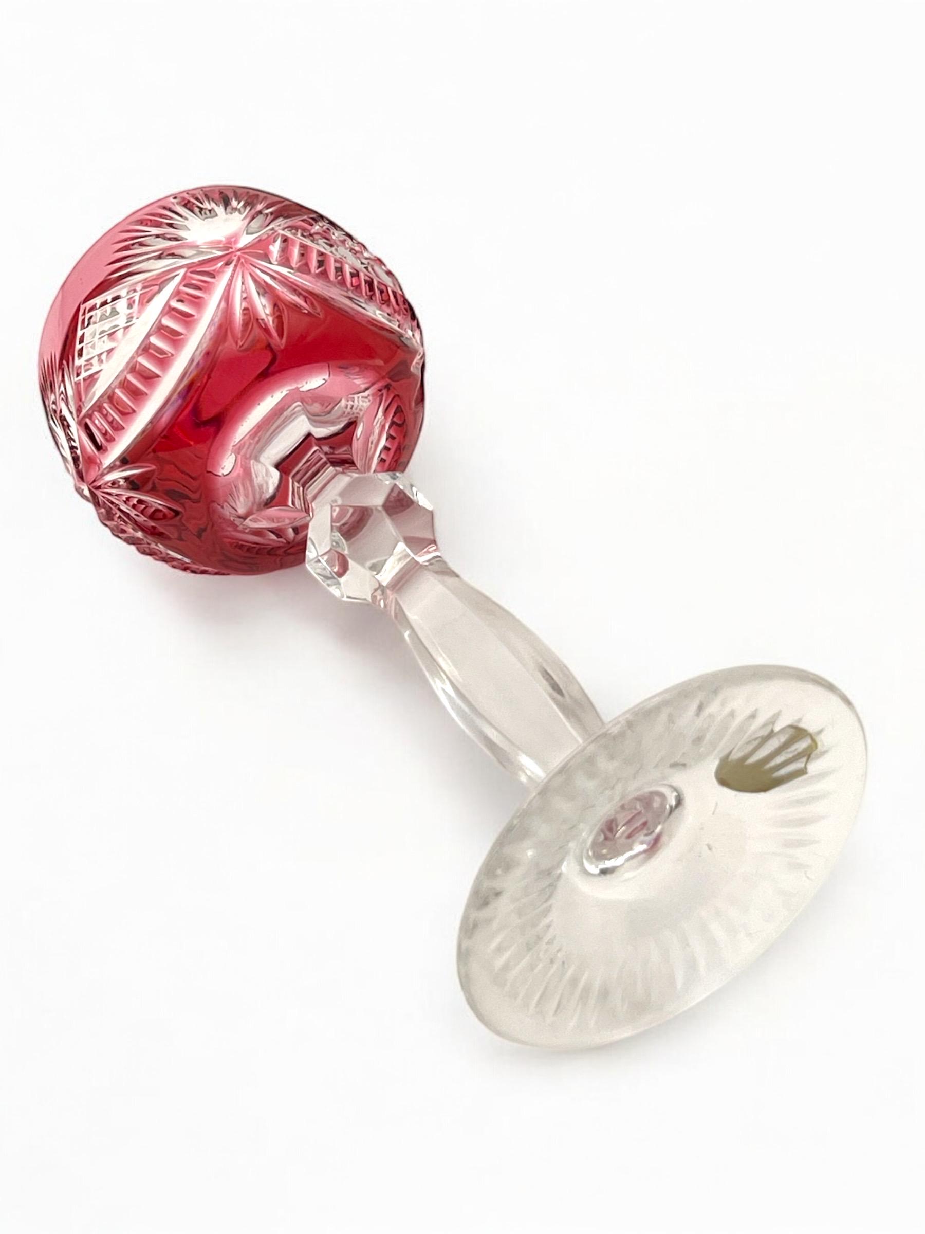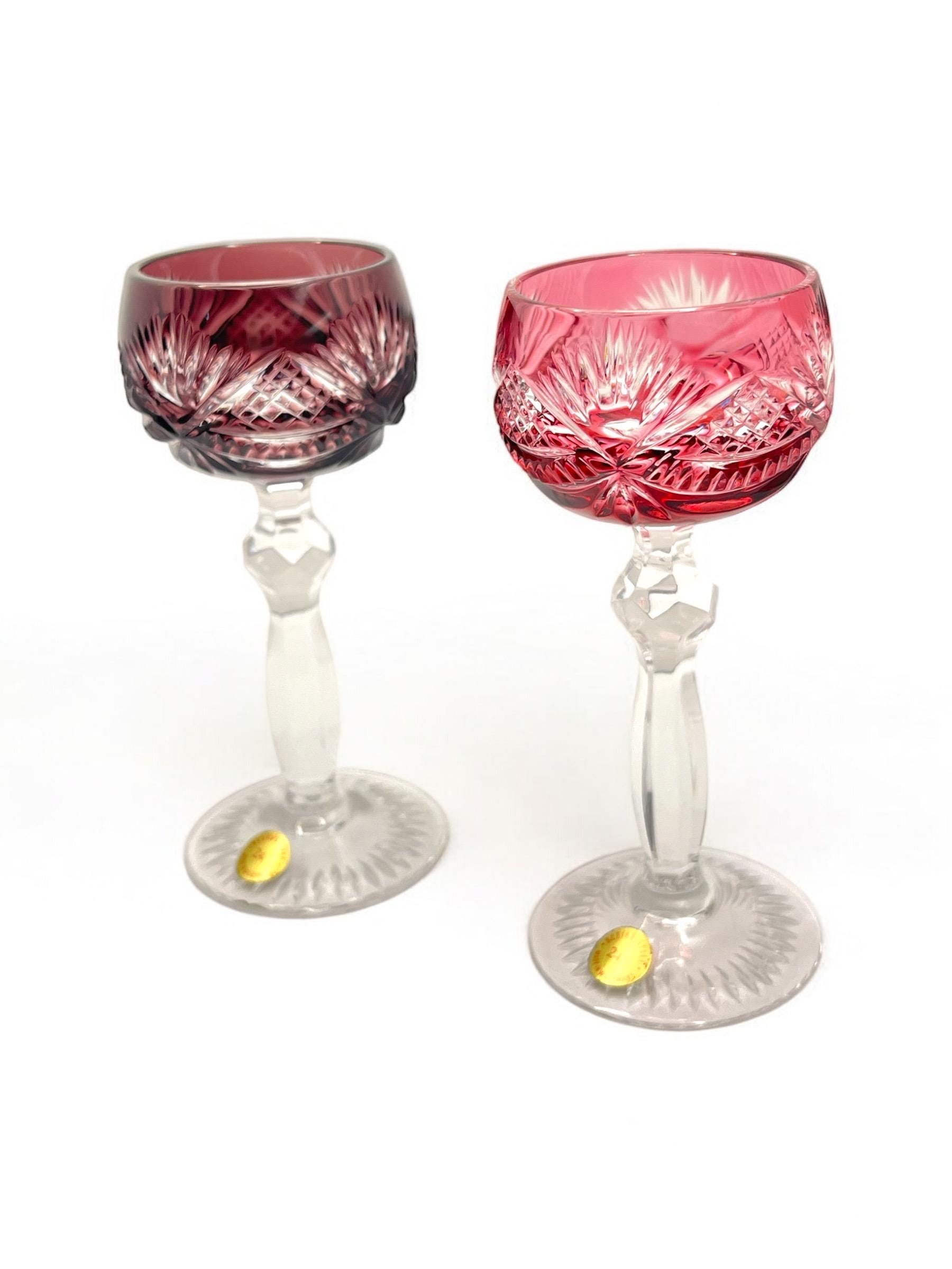 A Timeless Pair of Elegance. Offered here is a stunning piece of vintage craftsmanship — an individually sold, hand-cut 24% lead crystal liqueur glass, made in Germany. Available in two vibrant color options: deep ruby red and rosé pink. These glasses combine Bohemian elegance with precision German quality, reflecting masterful detail in every cut.