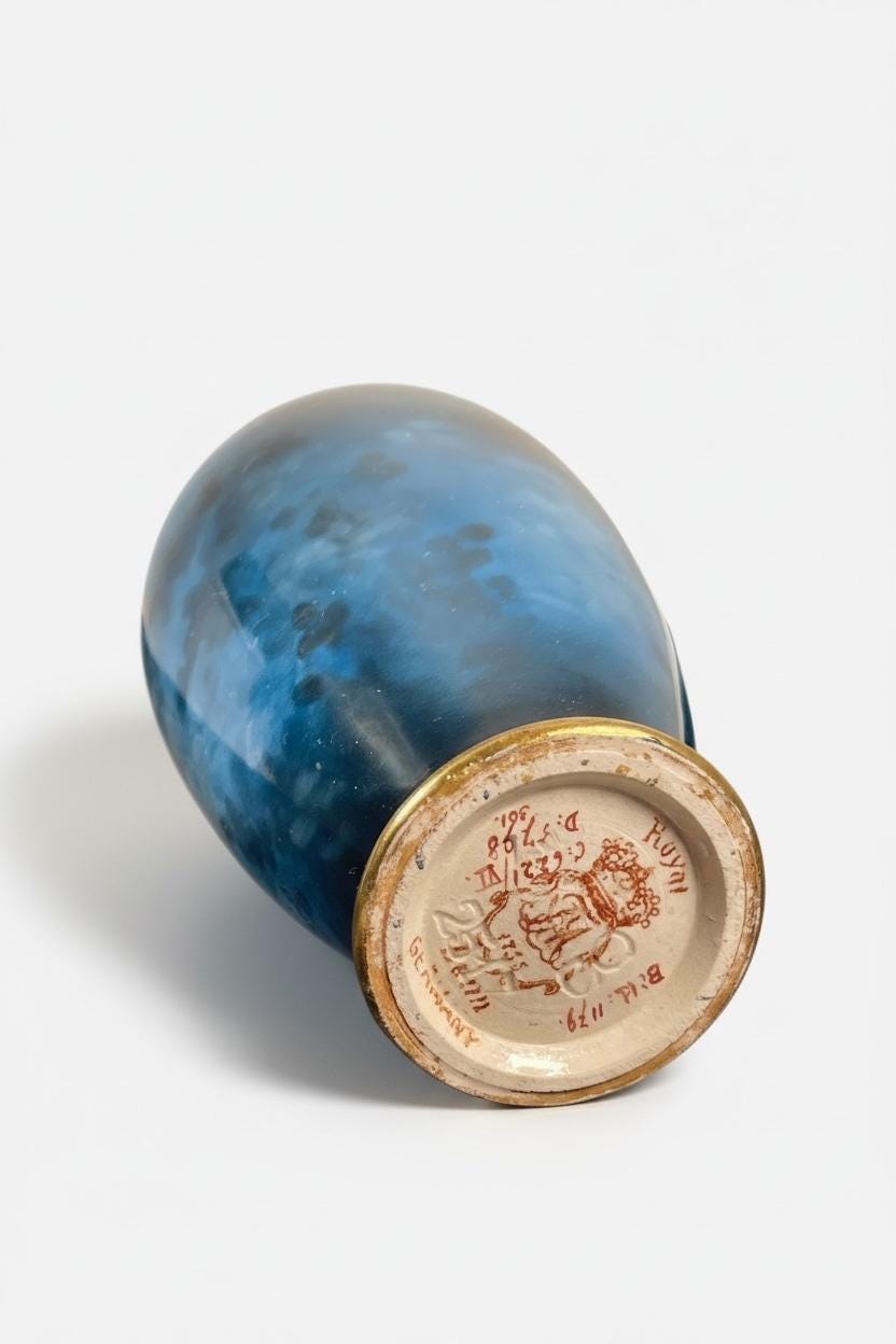Fully handmade and decorated, this piece showcases exceptional German craftsmanship from the late 19th–early 20th century. The base carries the authentic Royal Bonn mark.