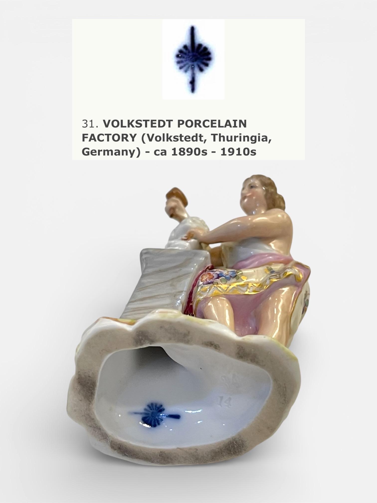 The underside bears the blue Volkstedt porcelain factory mark (Volkstedt, Thuringia, Germany), consistent with production from the late 19th to early 20th century.