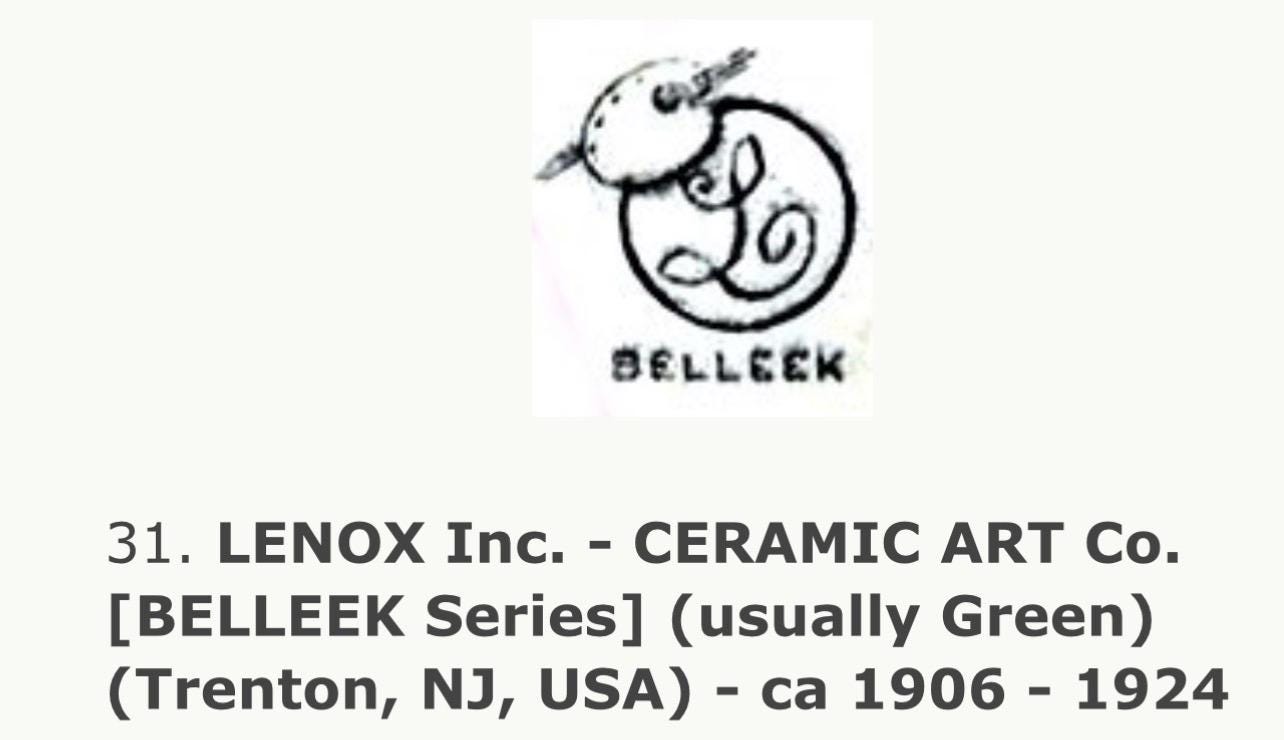 United States – Trenton, New Jersey Lenox Ceramic Art Co. (Belleek Series) Circa 1906–1924